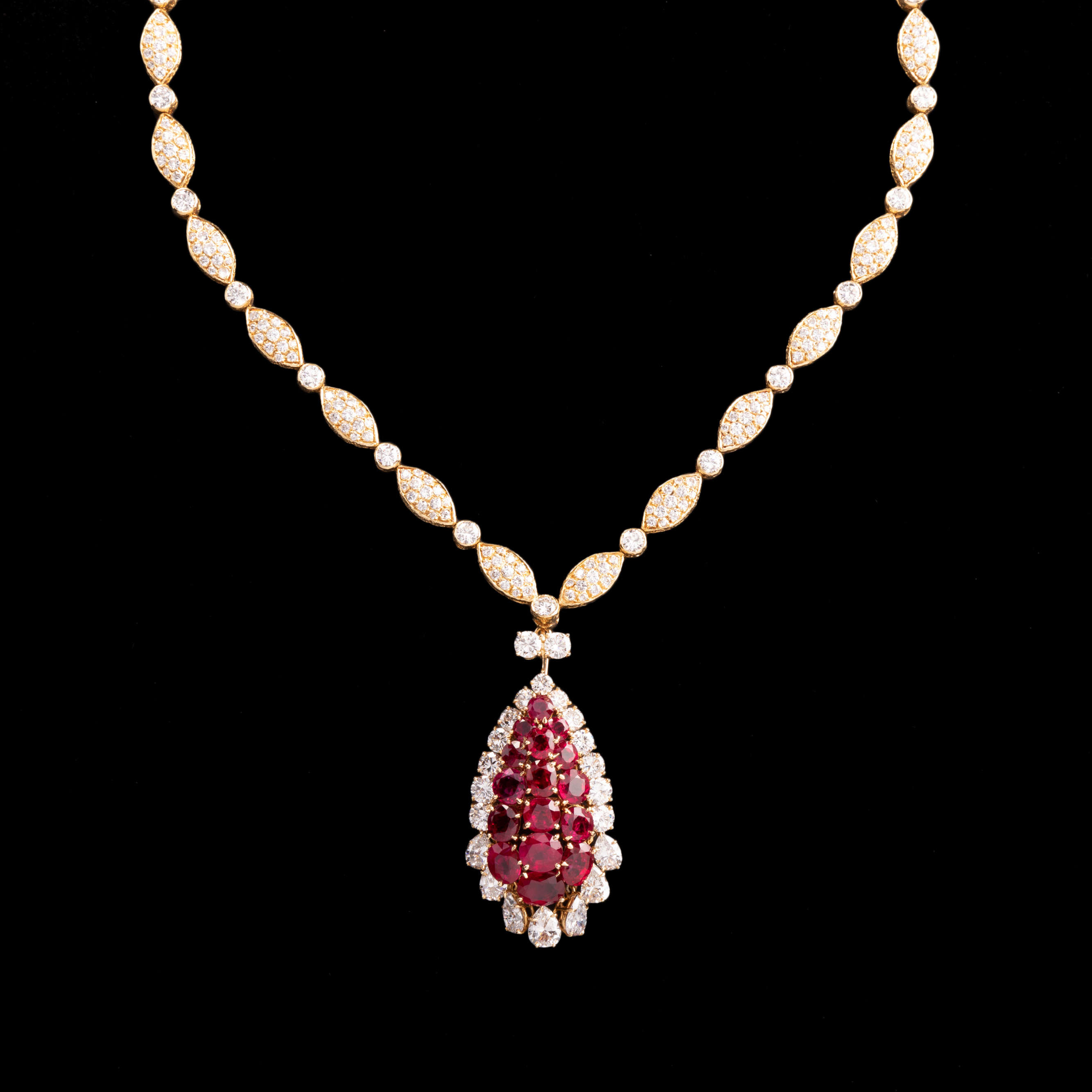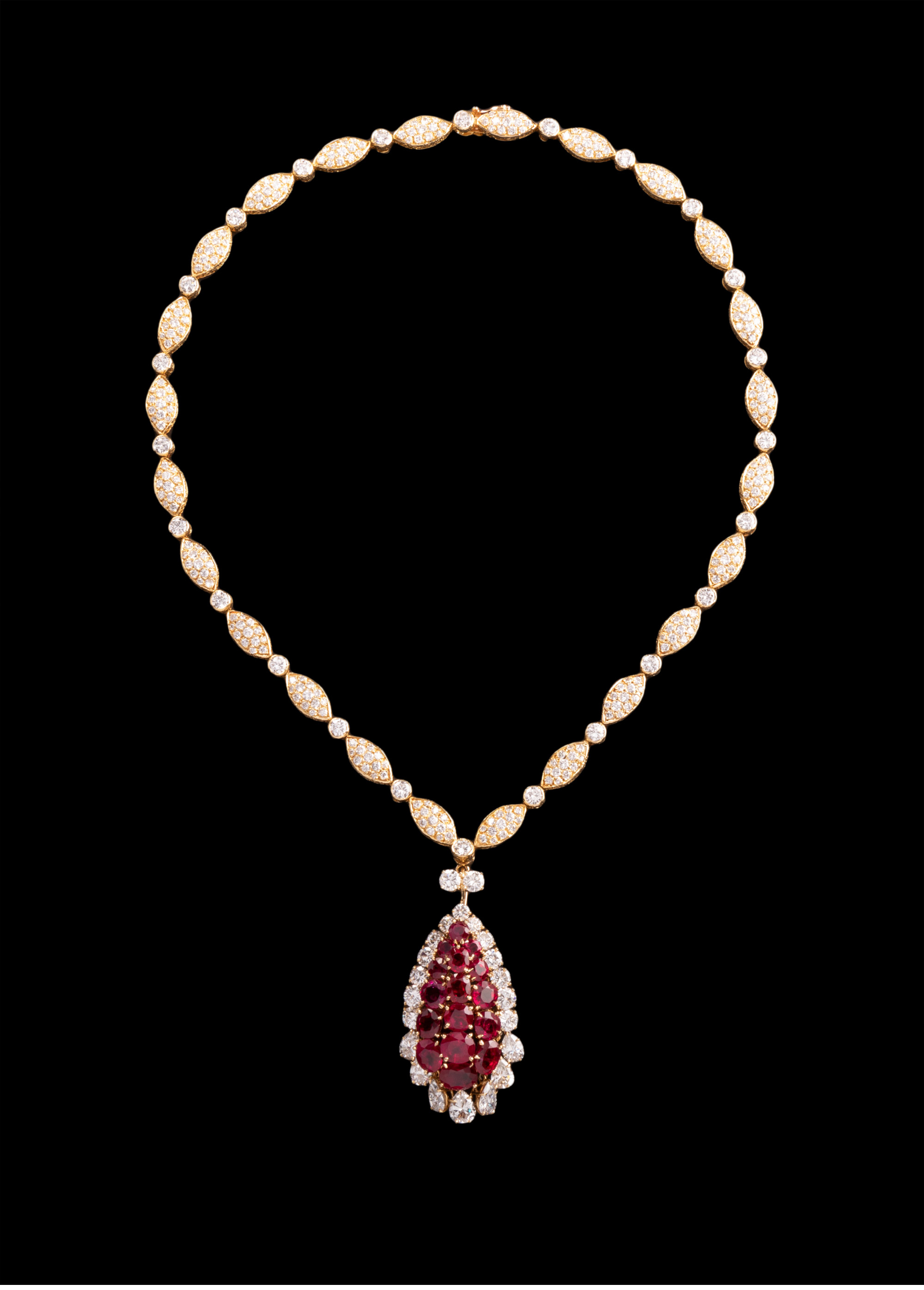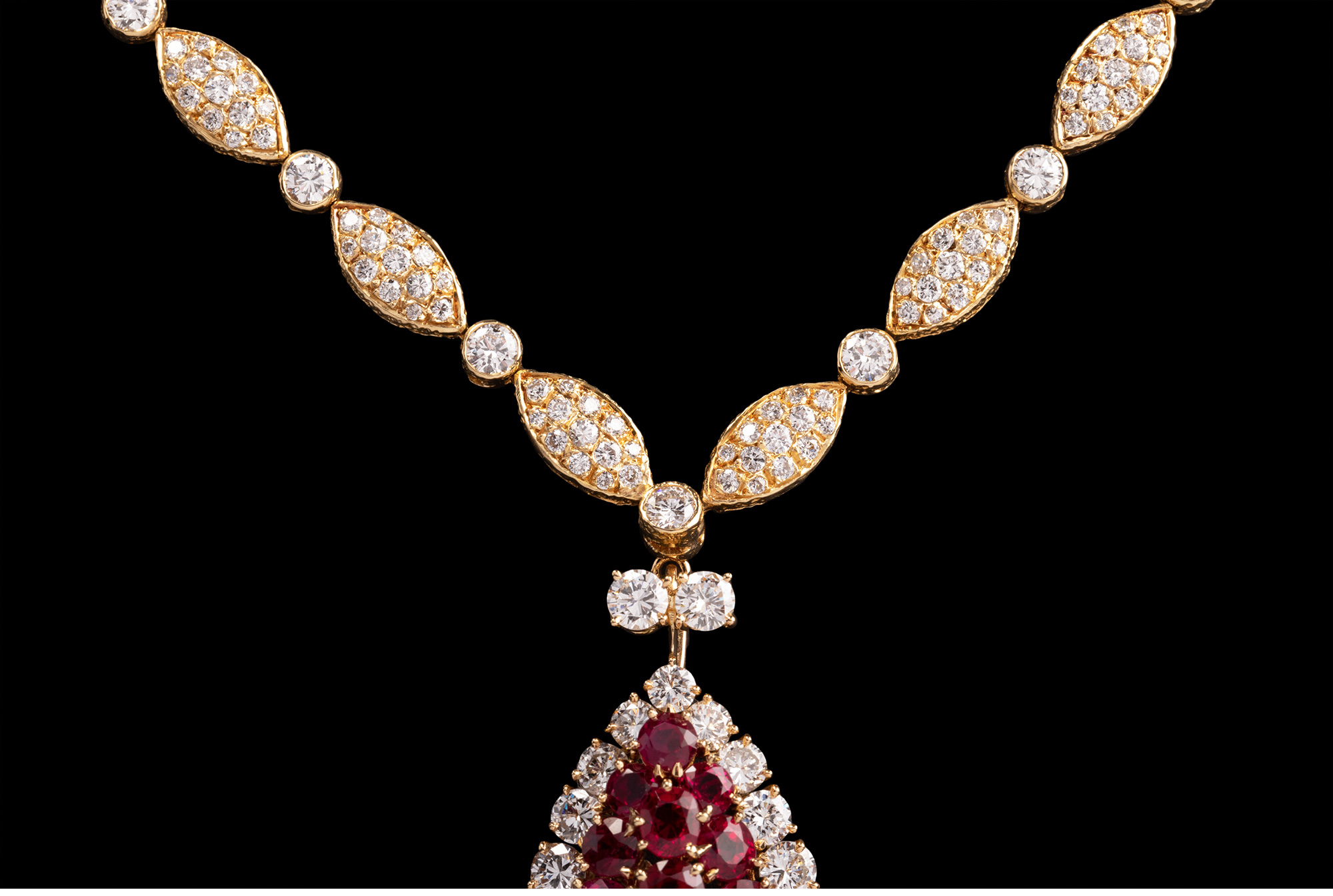 独角鹿西洋古董首饰珠宝法国18K金镶嵌钻石红宝石吊坠项链