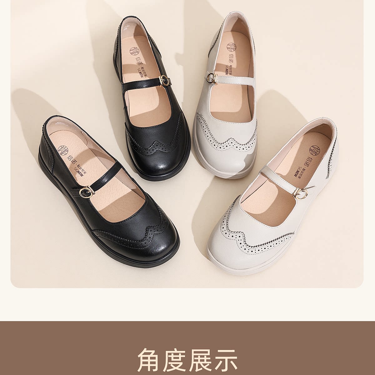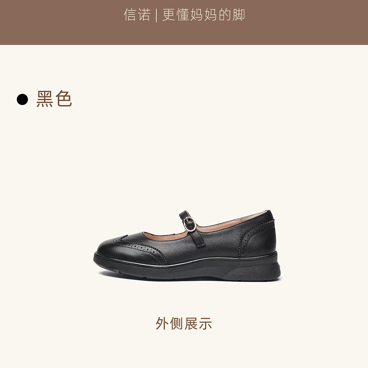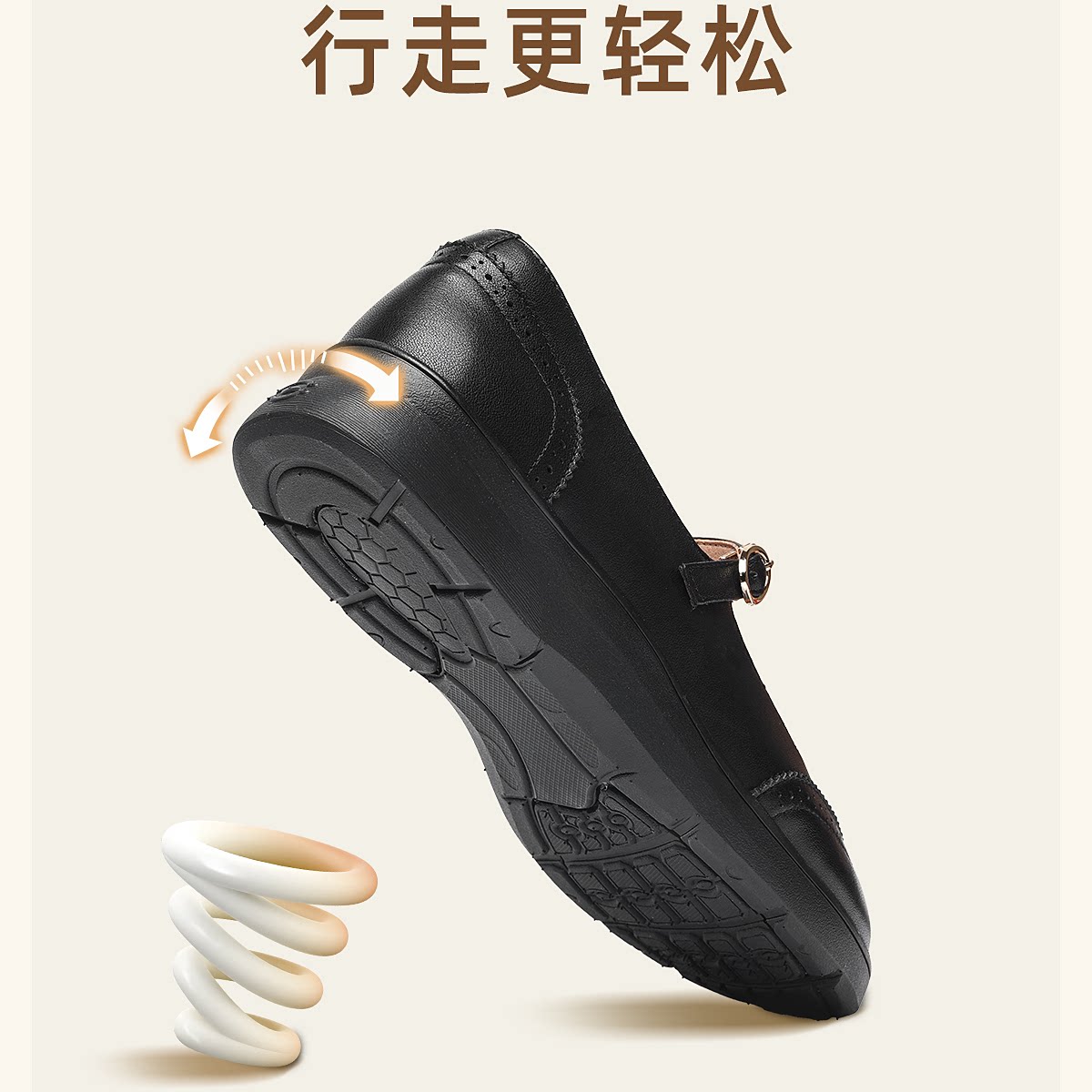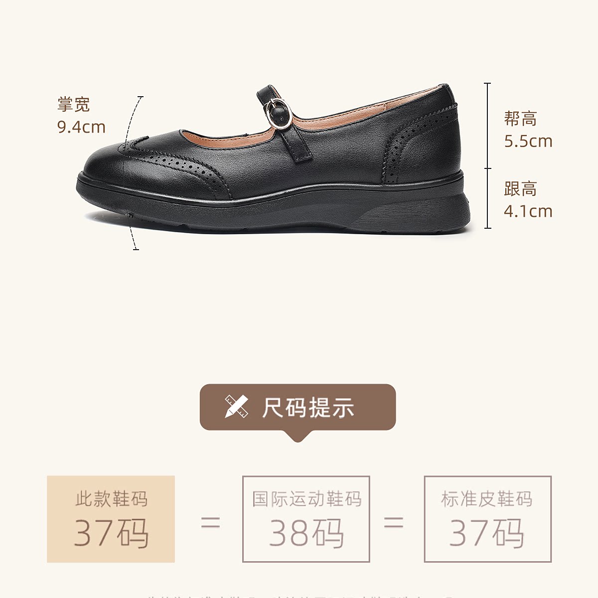 黑色真皮玛丽珍鞋女平底一字扣带雕花软底舒适单鞋6C5096-6