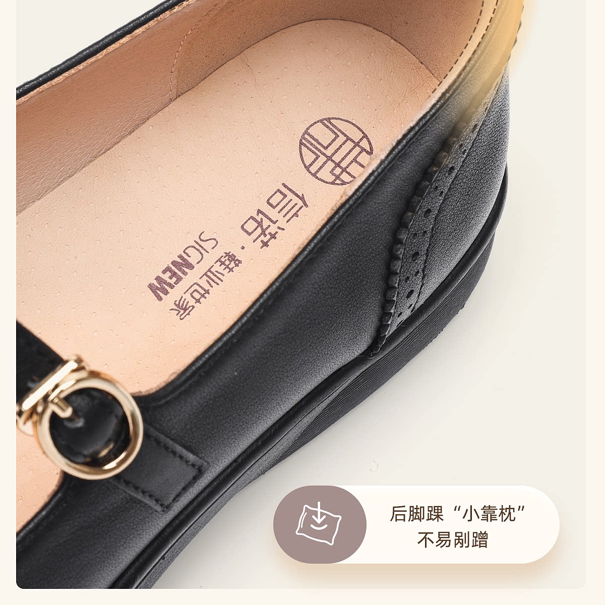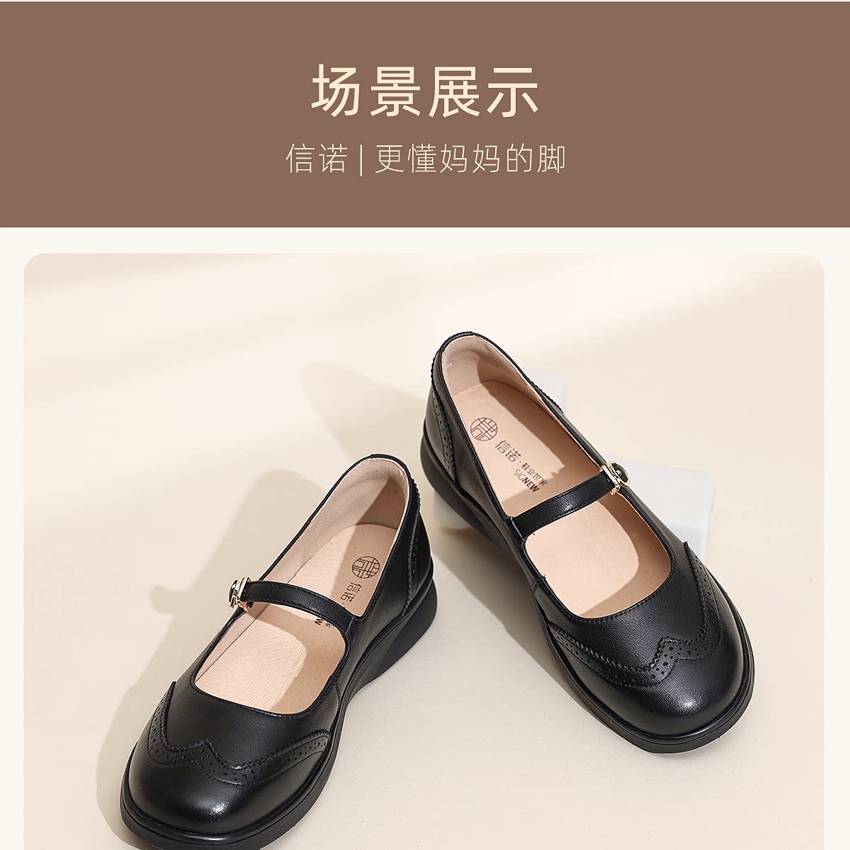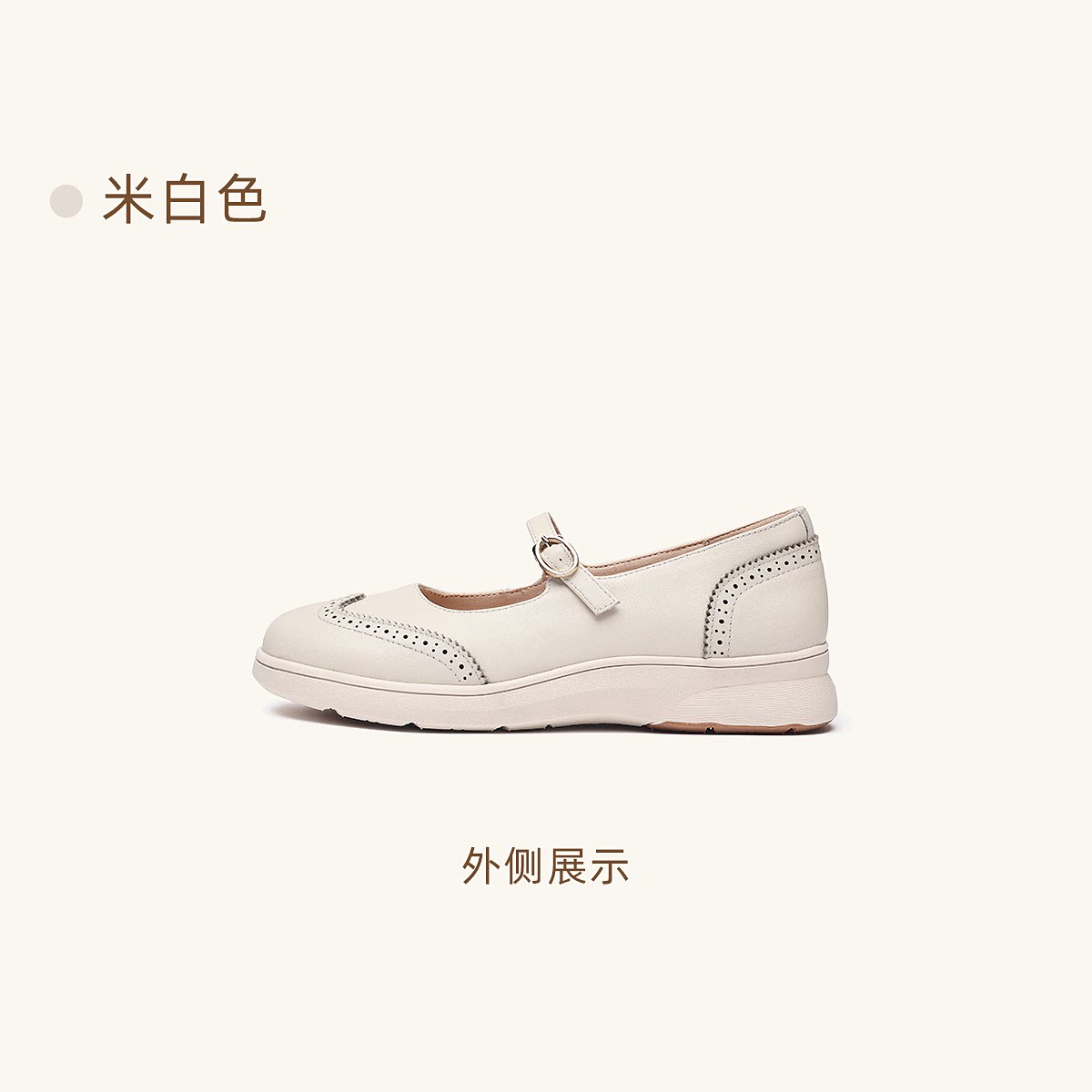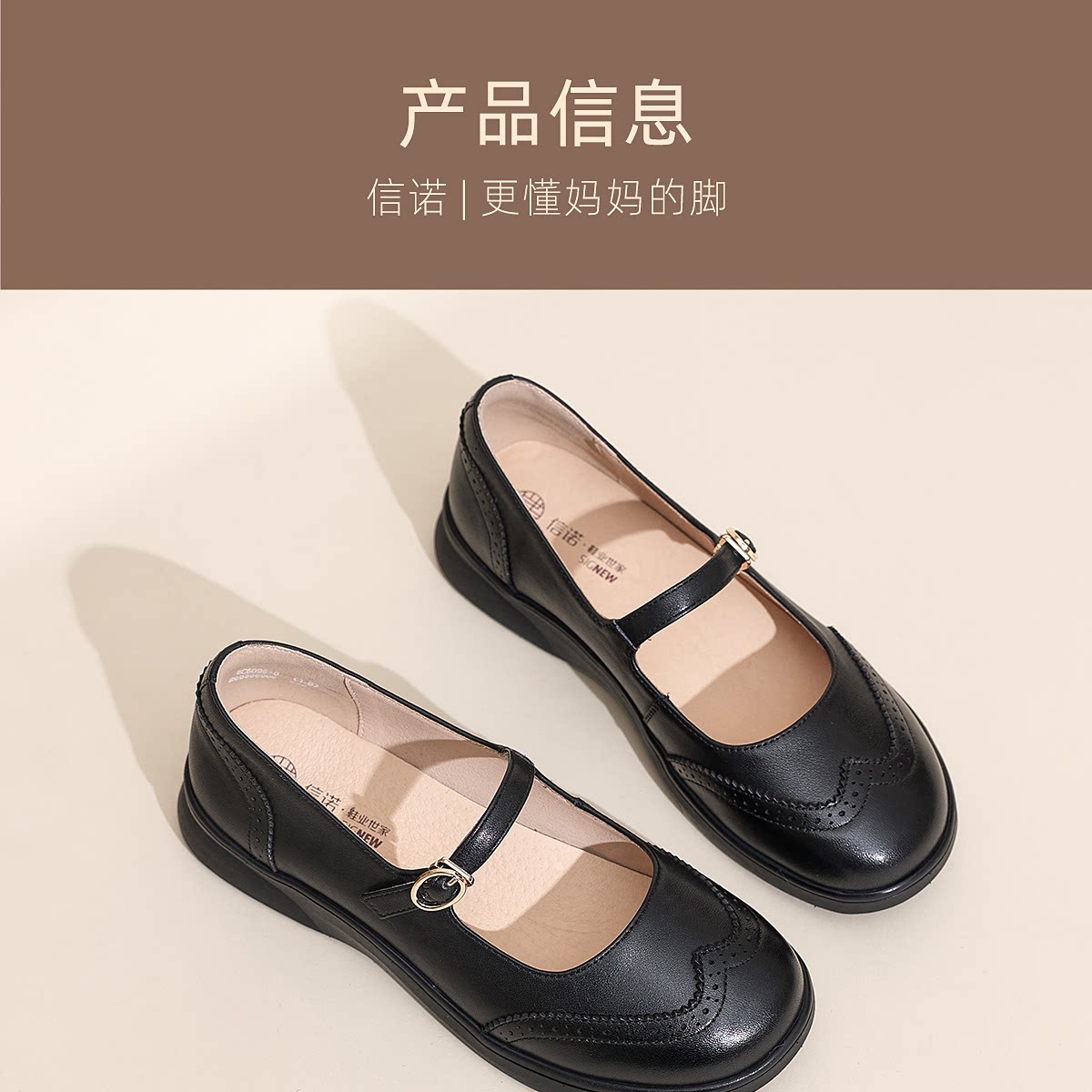 黑色真皮玛丽珍鞋女平底一字扣带雕花软底舒适单鞋6C5096-6