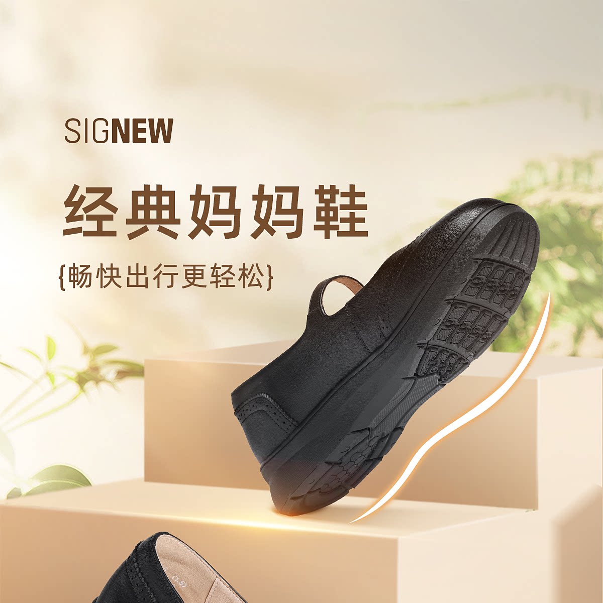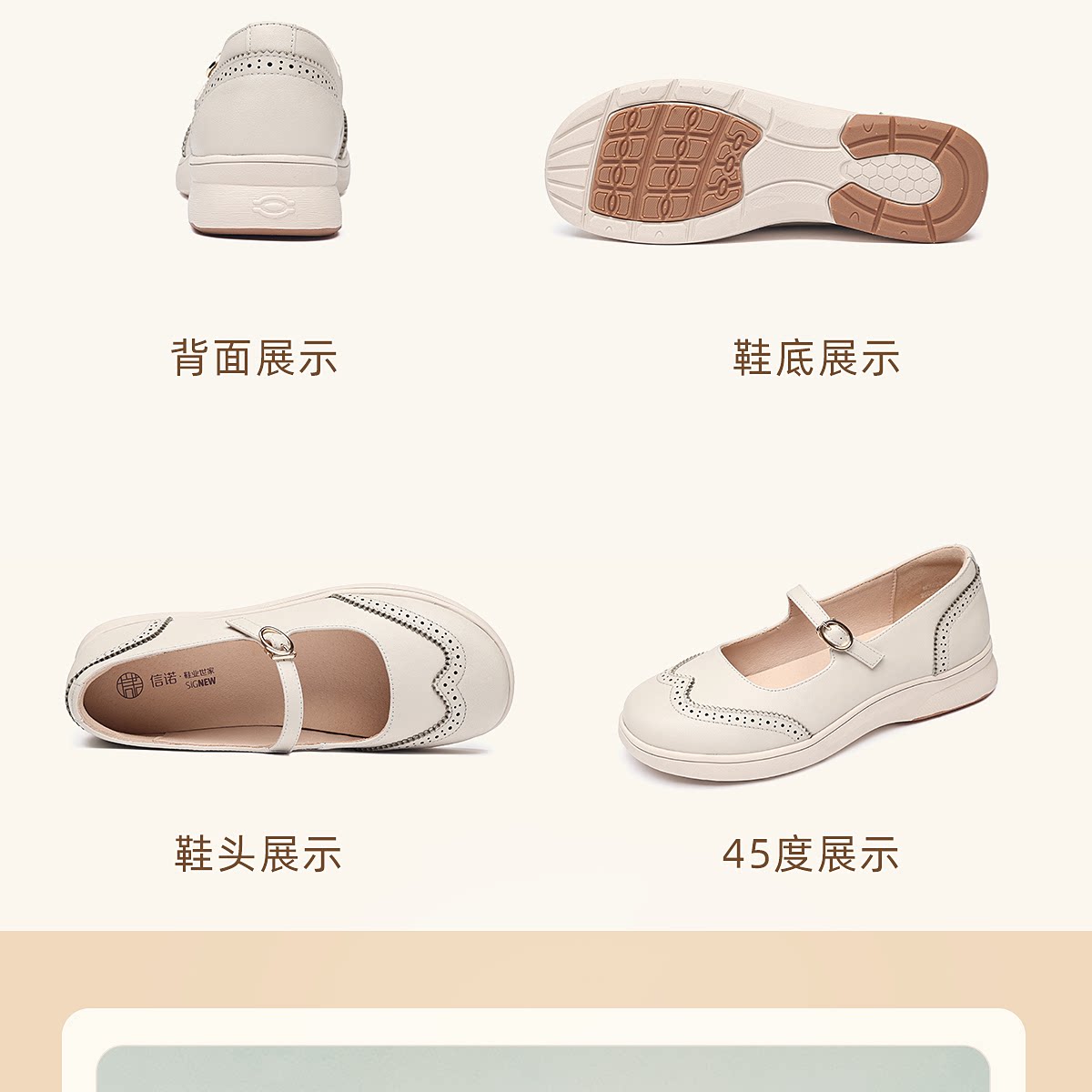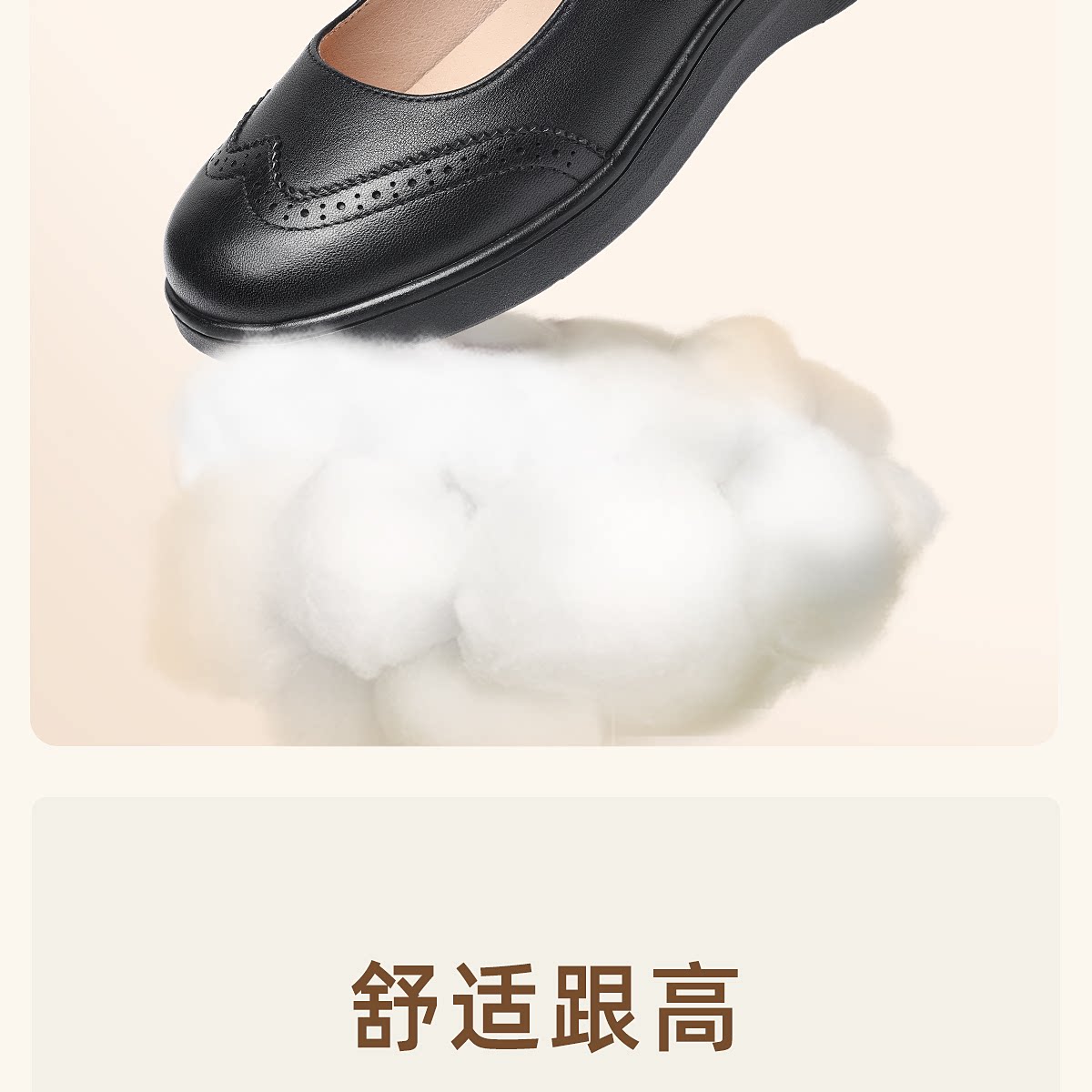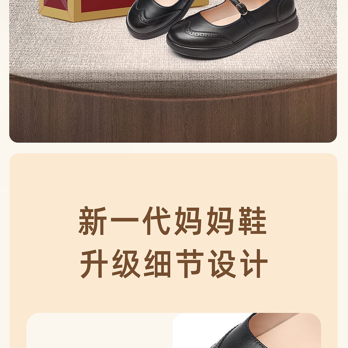黑色真皮玛丽珍鞋女平底一字扣带雕花软底舒适单鞋6C5096-6