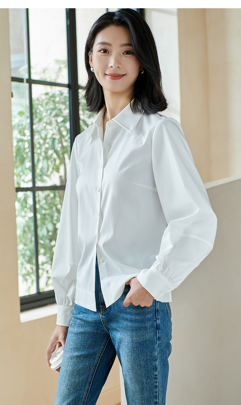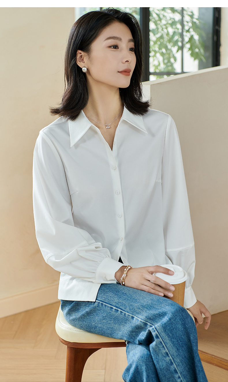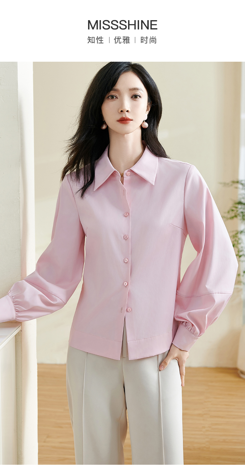 剩2XL 米思阳2026春季新款简约休闲纯色衬衫修身弹力搭配职业上衣0060