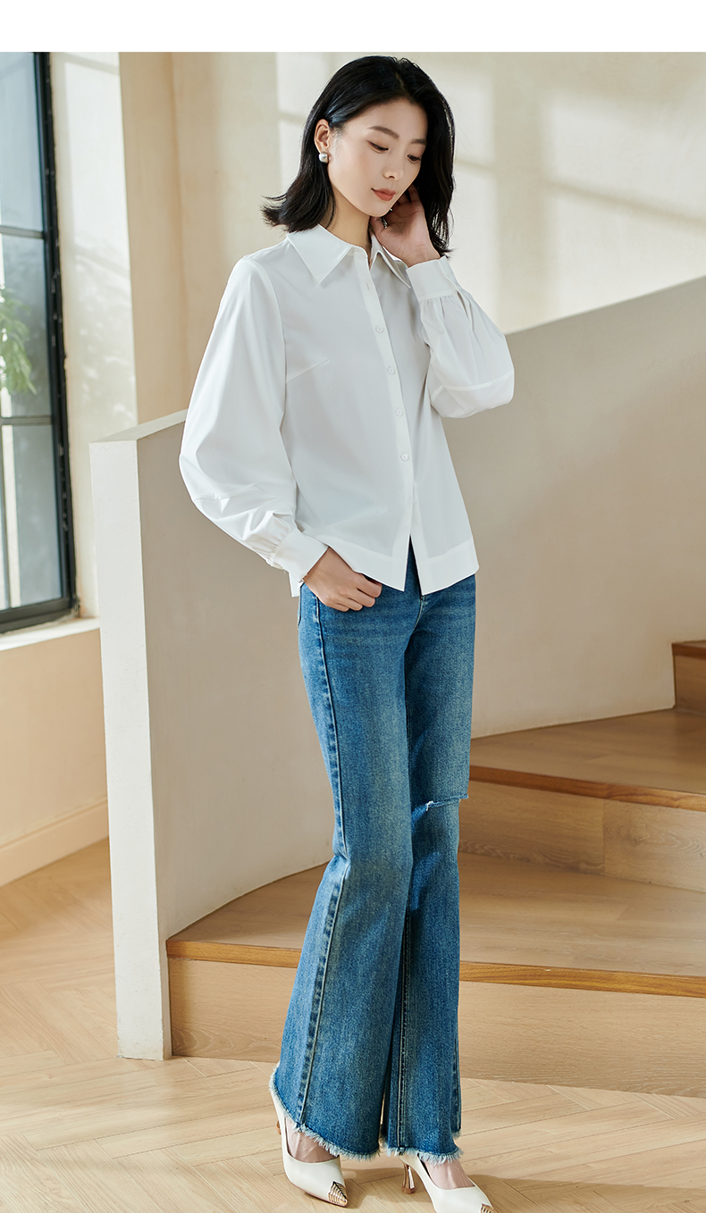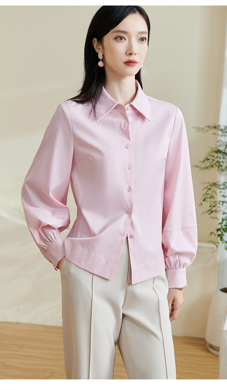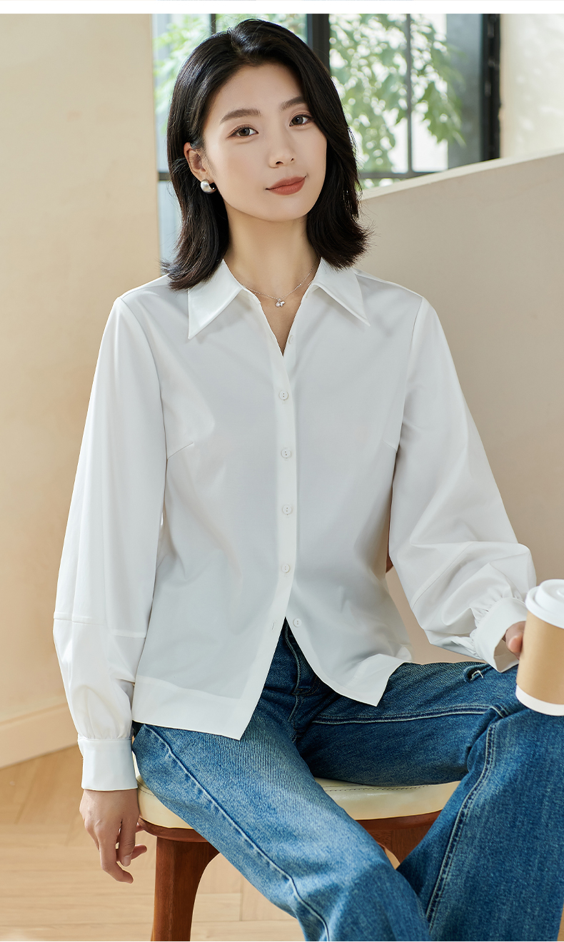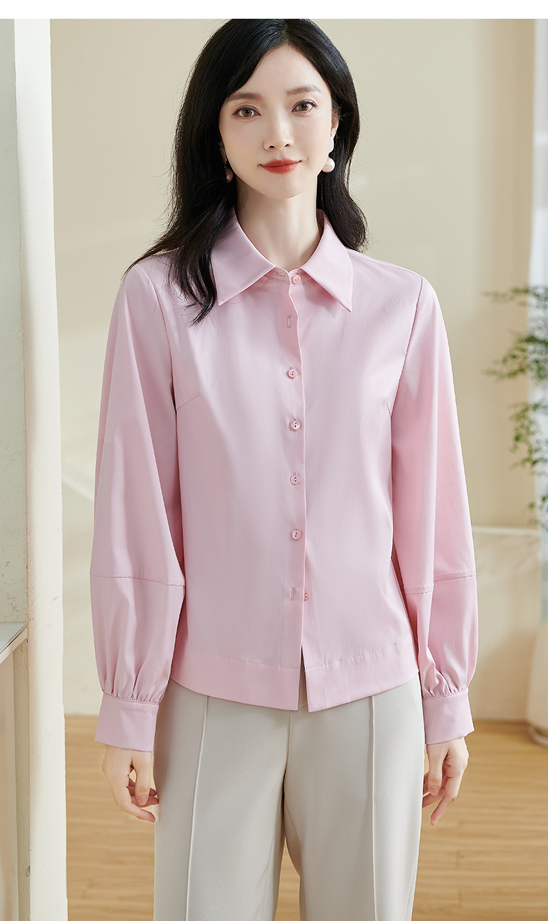 剩2XL 米思阳2026春季新款简约休闲纯色衬衫修身弹力搭配职业上衣0060
