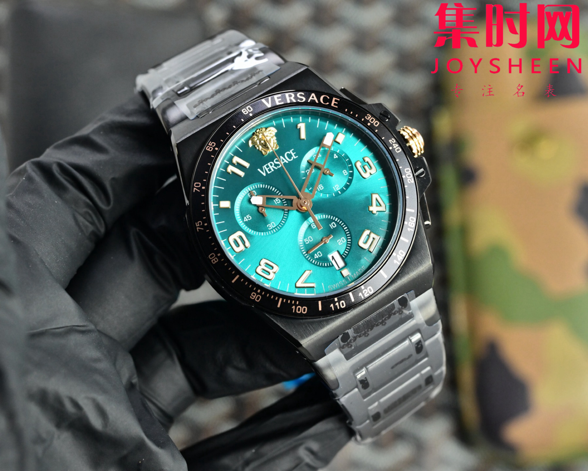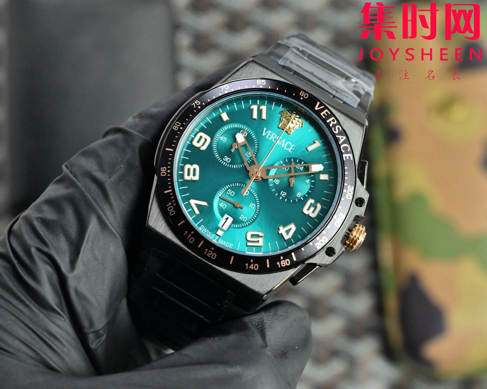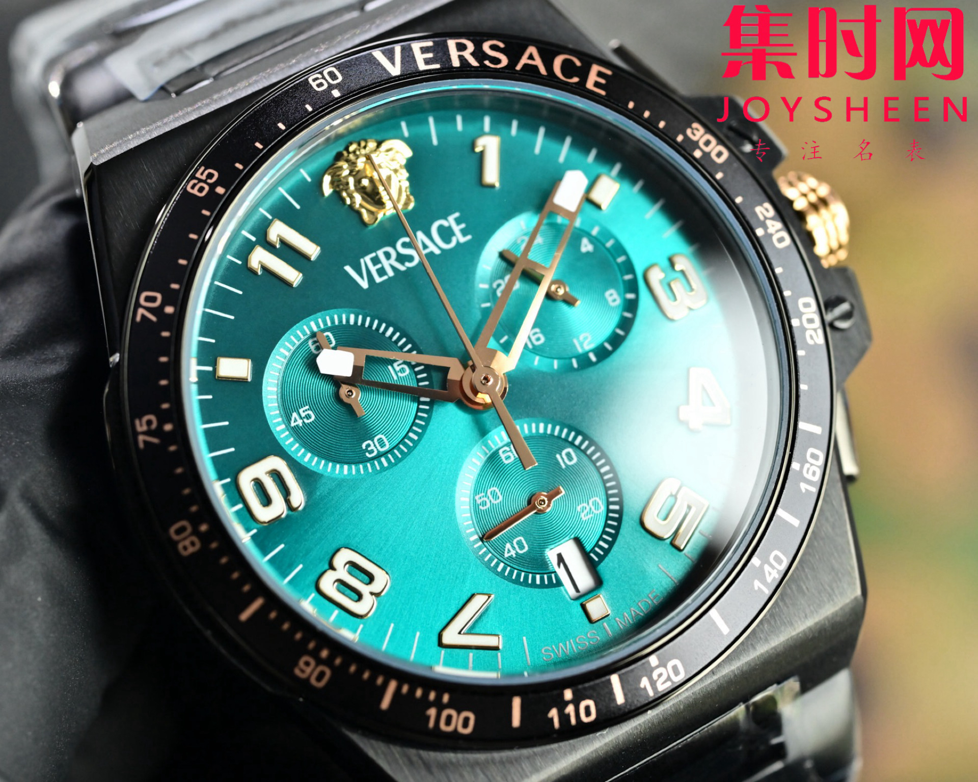 范思哲新款六针计时 多功能男士腕表 采用进口VK计时石英机芯 316L精钢表壳表带 表径45mm 希腊回纹环绕表圈,浮雕英文优雅表面,12点位美杜莎浮雕头像,一眼勾勒迷人视线。成功男士值得拥有。
