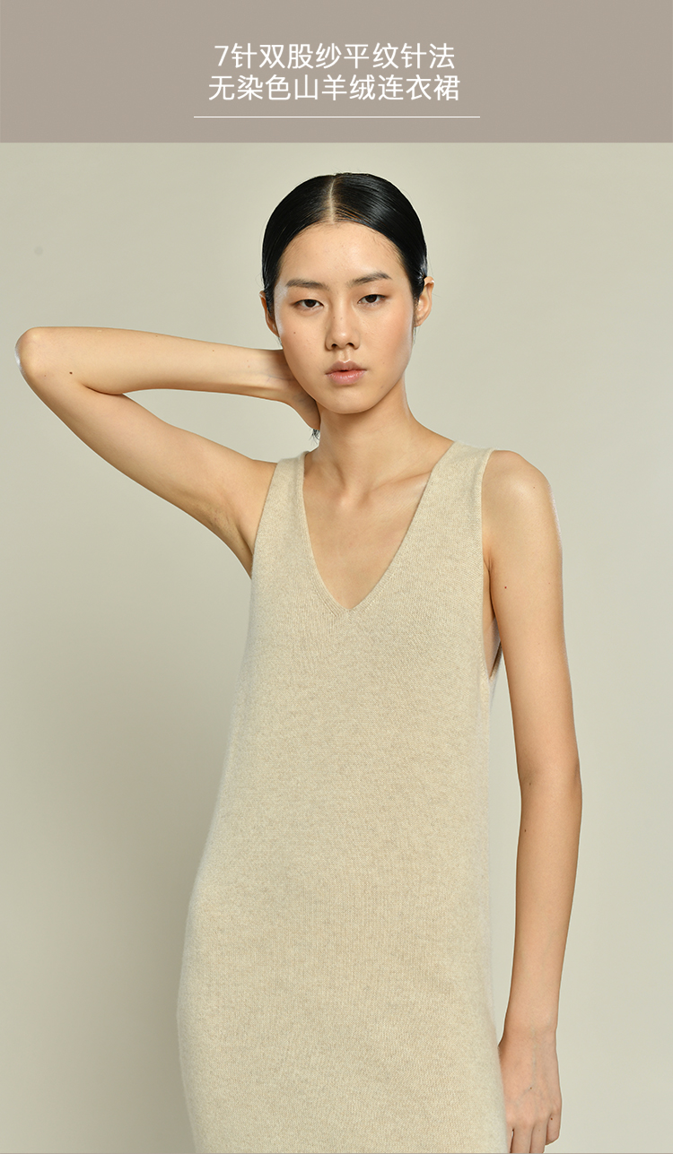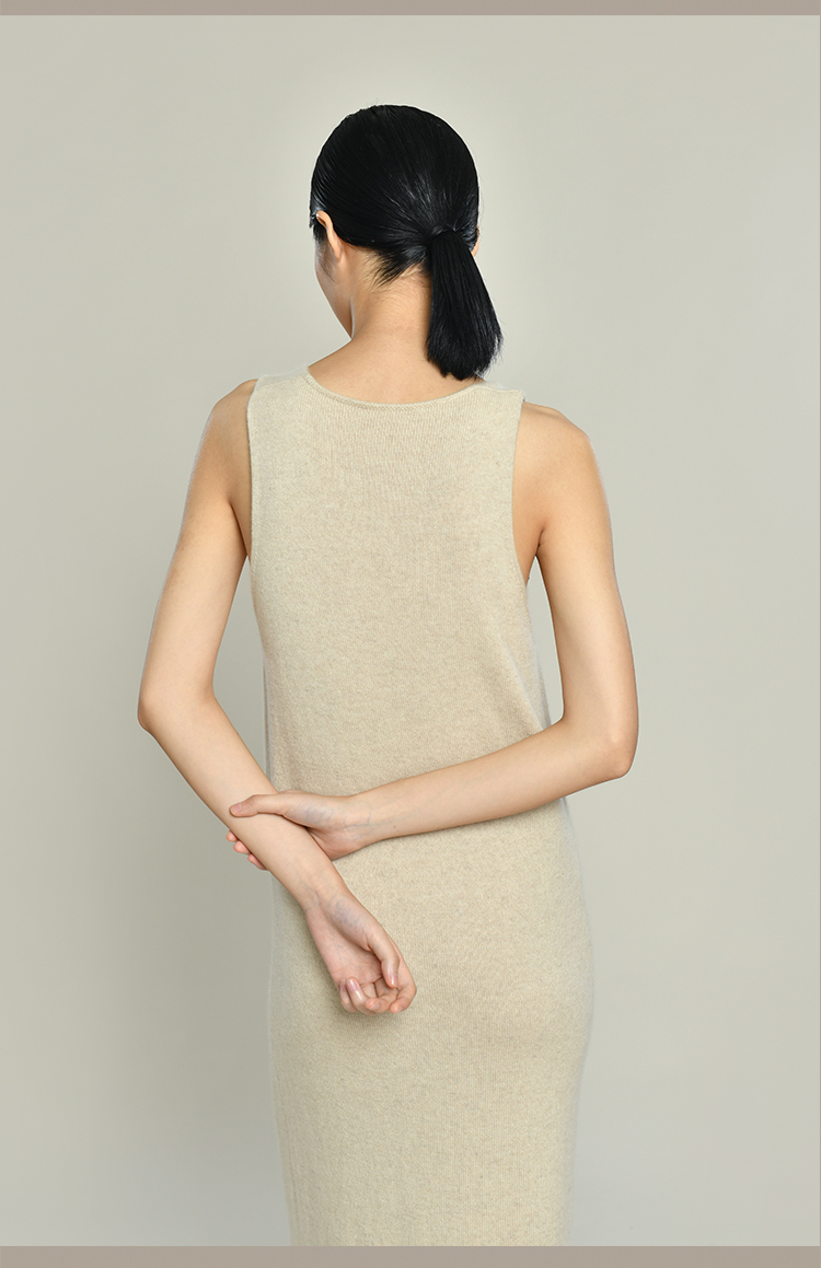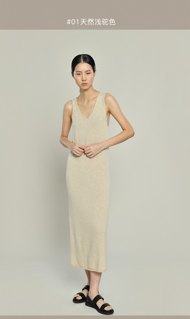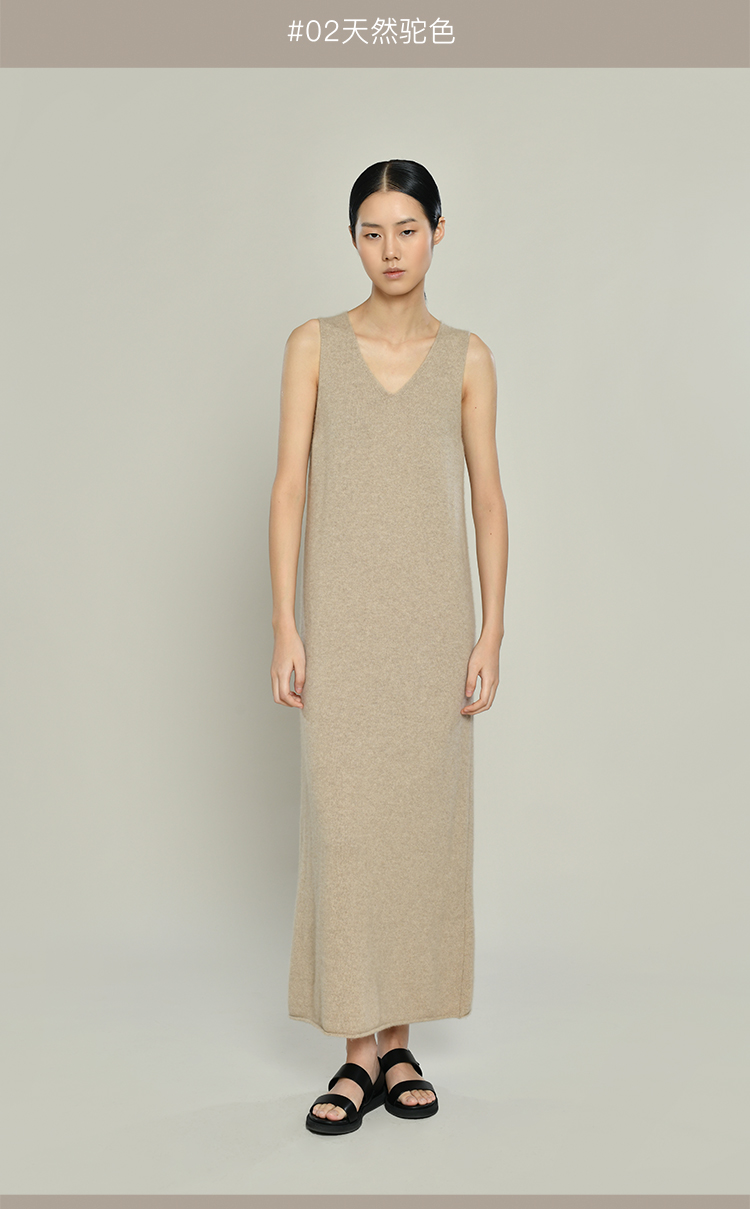 322工房无染色纯羊绒针织裙女秋冬简约通勤宽松无袖吊带背心长裙