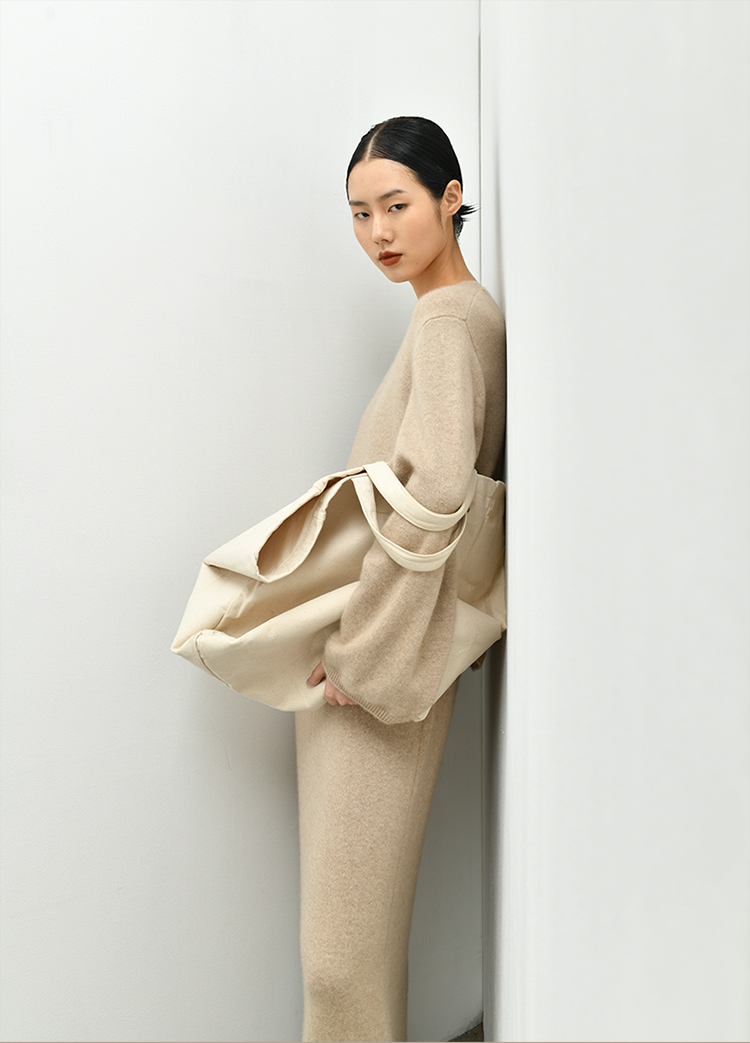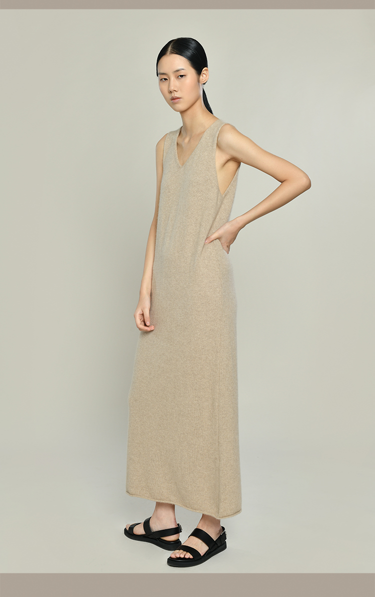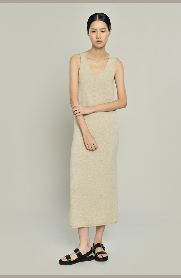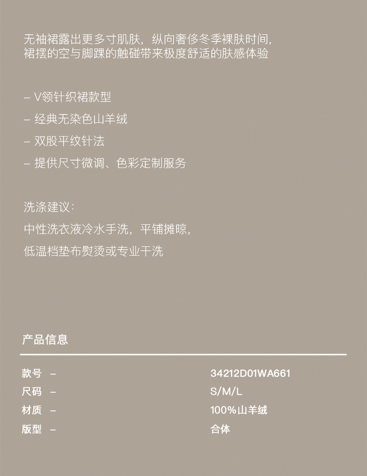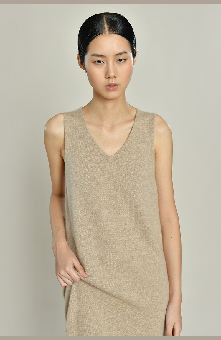 322工房无染色纯羊绒针织裙女秋冬简约通勤宽松无袖吊带背心长裙