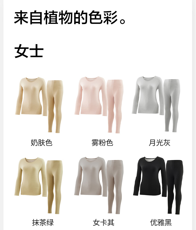 【瑜伽生活家】「男女套装!植物暖衣」莱赛尔天丝德绒情侣保暖内衣女蚕丝秋衣秋裤男士加绒保暖套装