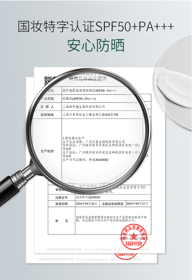 颜伊施舒缓清透防晒乳50g SPF50+PA+++