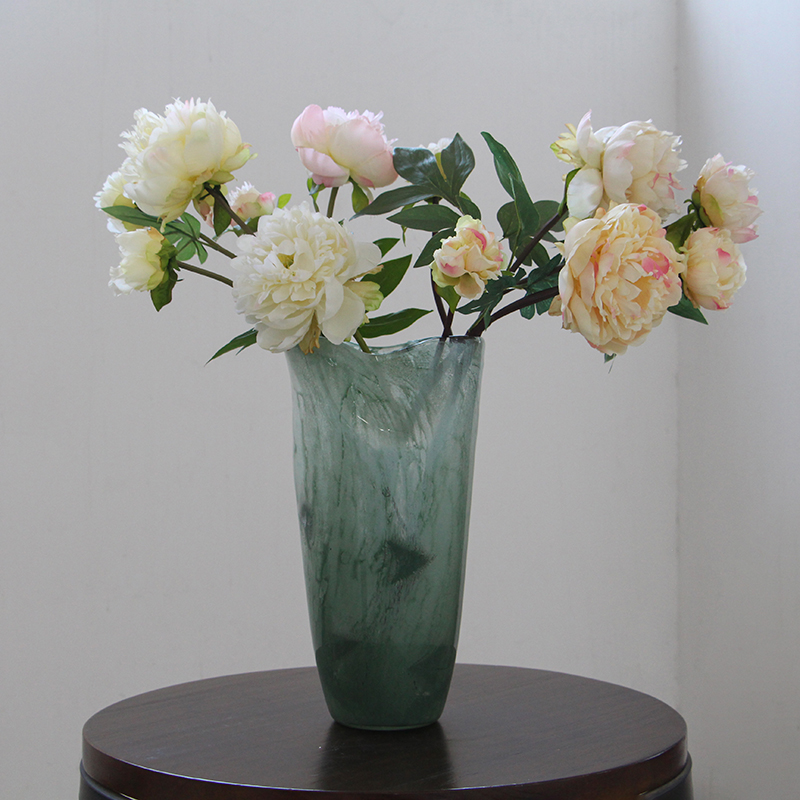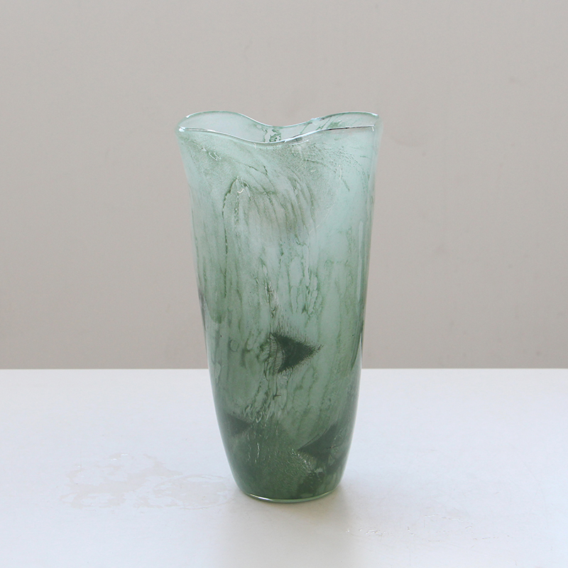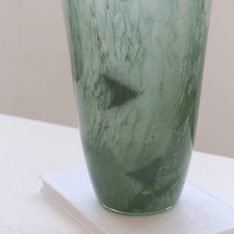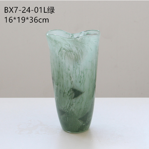 现代简约绿色敞口渐变磁粉玻璃花瓶电视柜餐桌鲜花百合中古风花瓶