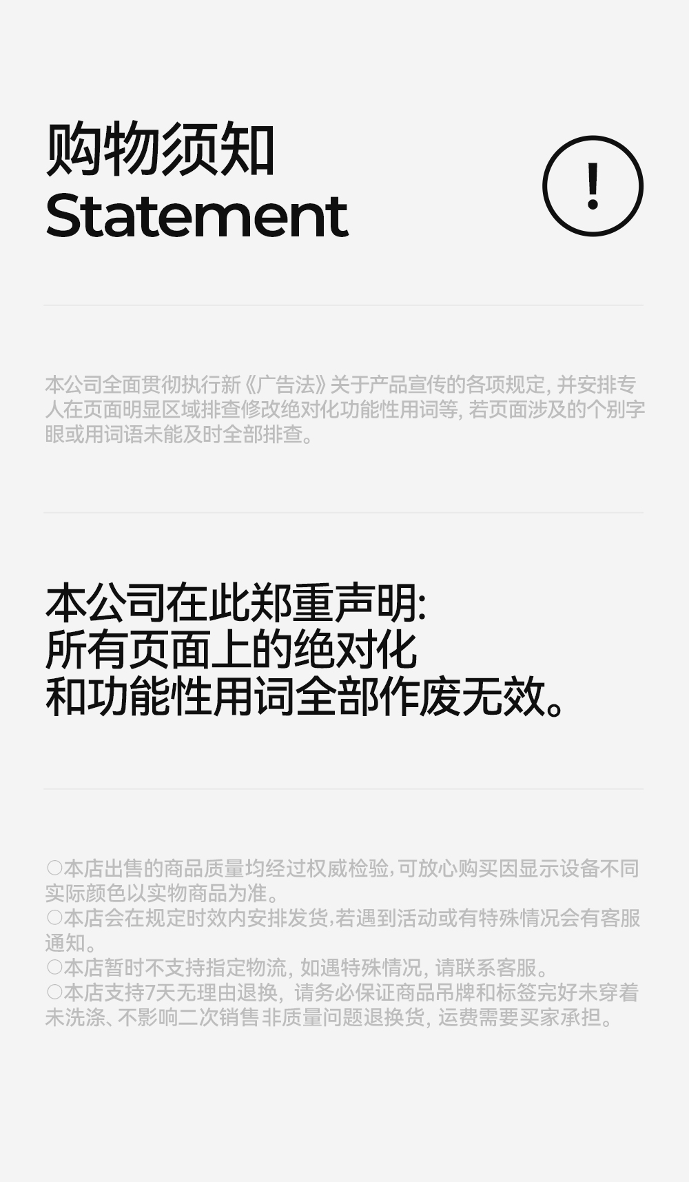 四、退换货及售后政策:非质量问题不影响二次销售的商品支持七天无理由退换货,买家承担运费自行寄回;收到商品有任何质量问题请联系我们处理售后