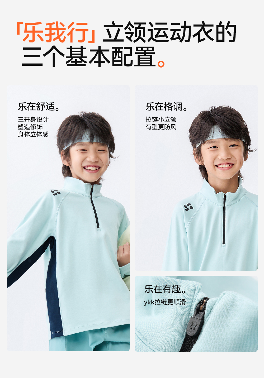 【乐我行儿童立领运动衣】森林棠26春款撞色立领吸湿排汗运动上衣20342518