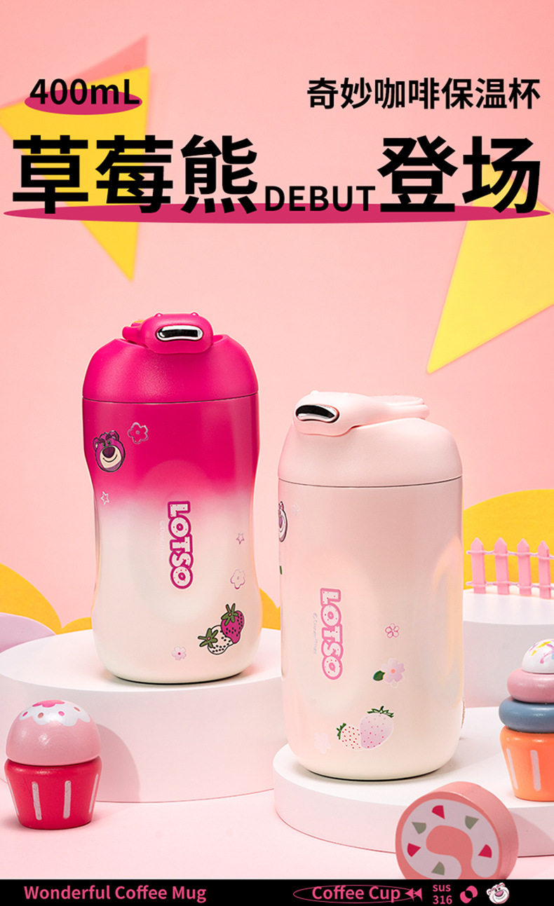 艾可思草莓熊系列奇妙咖啡保温杯400ml
