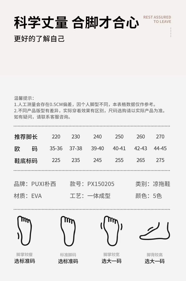 PUXI朴西飞流新款外穿、夏季户外散步软底防滑情侣运动拖