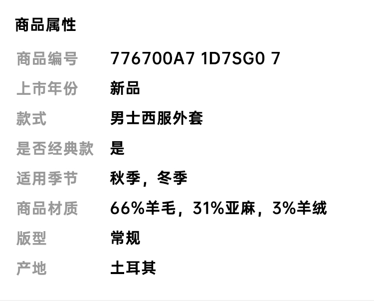 ZEGNA 杰尼亚 男士混纺羊毛西服外套 米色 776700A7 1D7SG0 7