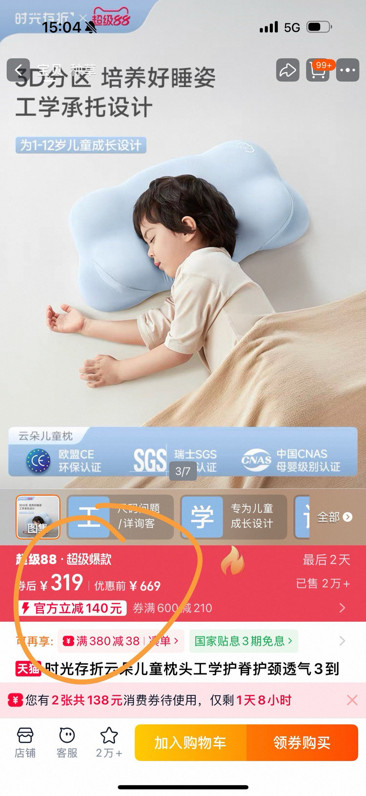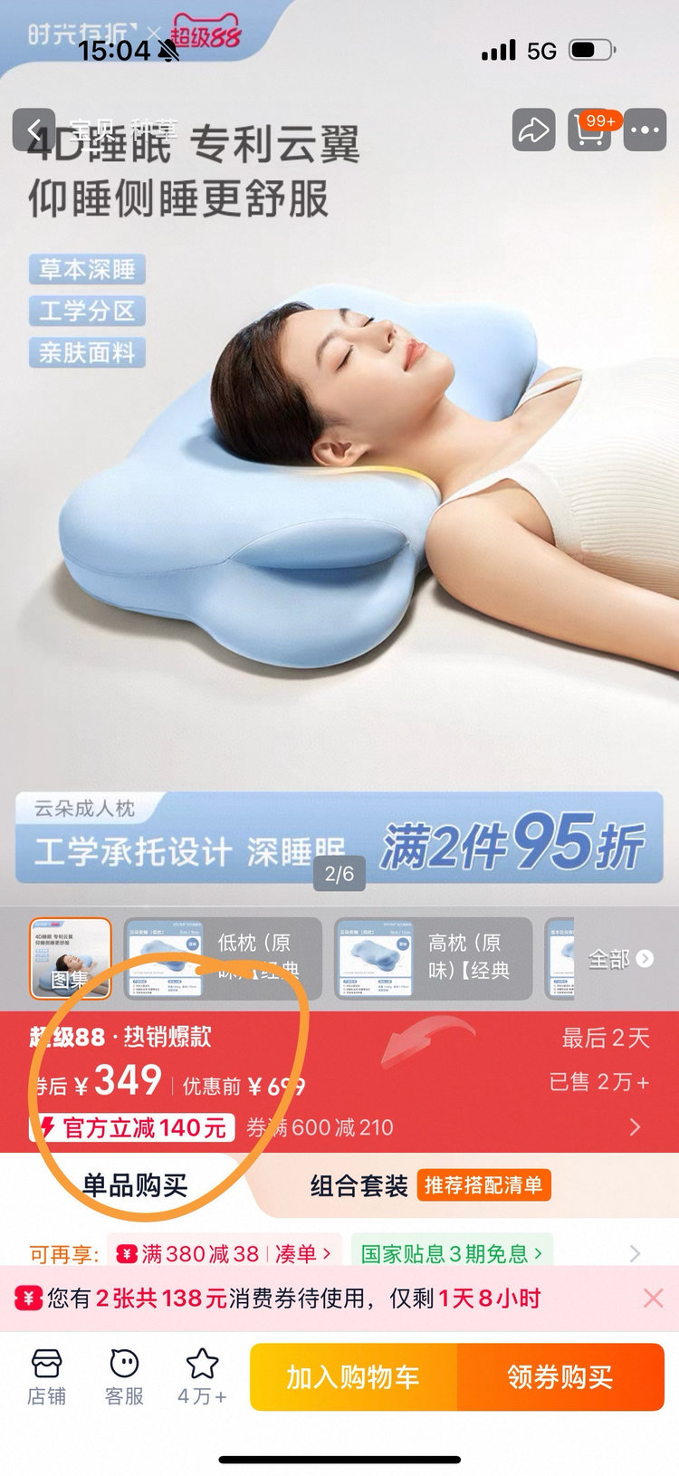📢📢好货不常有!!姐妹们速度看过来!很多品牌都在贴牌德云朵枕来袭!先来参考一下某宝卖的最好的一个亲戚,他们卖到300➕,销量2W➕!足以可见这个热度了,成人、儿童都可用的一款云朵枕☁️
