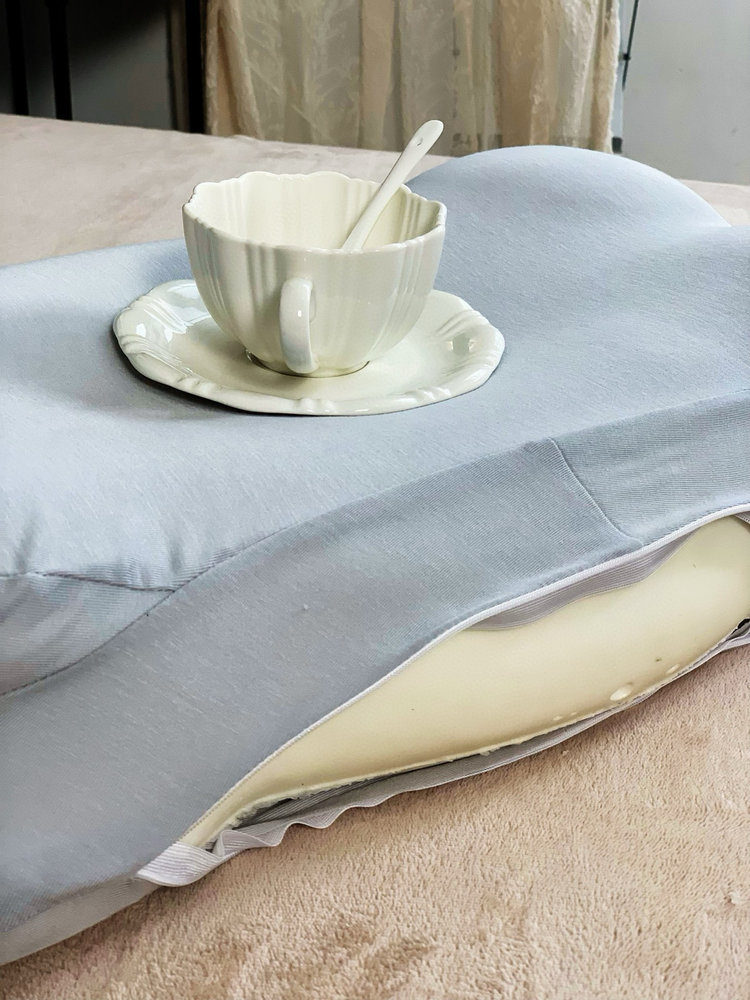 面料摸起来软fufu的,像云朵一样亲肤透气,夏天睡也不闷汗。里面的慢回弹记忆棉,压下去会慢慢回弹,支撑力刚刚好,不会越睡越塌。