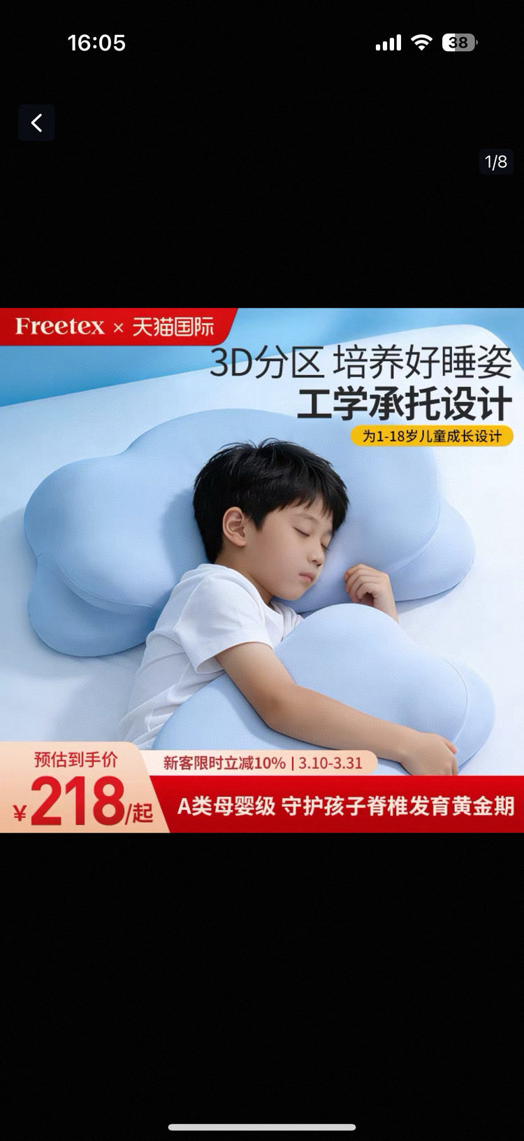 大人和小孩的都做了遵循人体工学的立体分区设计,支撑力还好呀,无论是侧睡平躺都能很贴合头部和肩颈,睡久了也不累