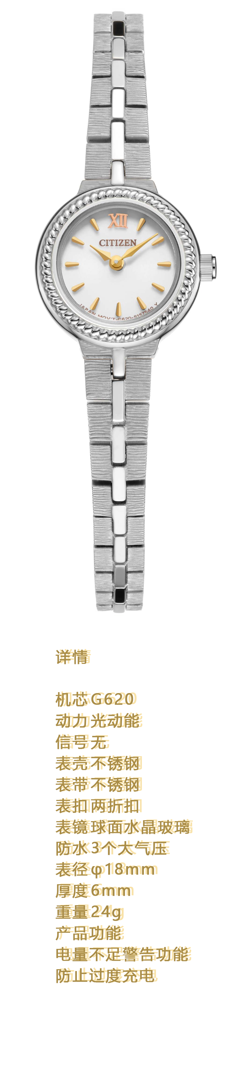 西铁城日本官方正品不锈钢光动能手饰女表EG2981-57A