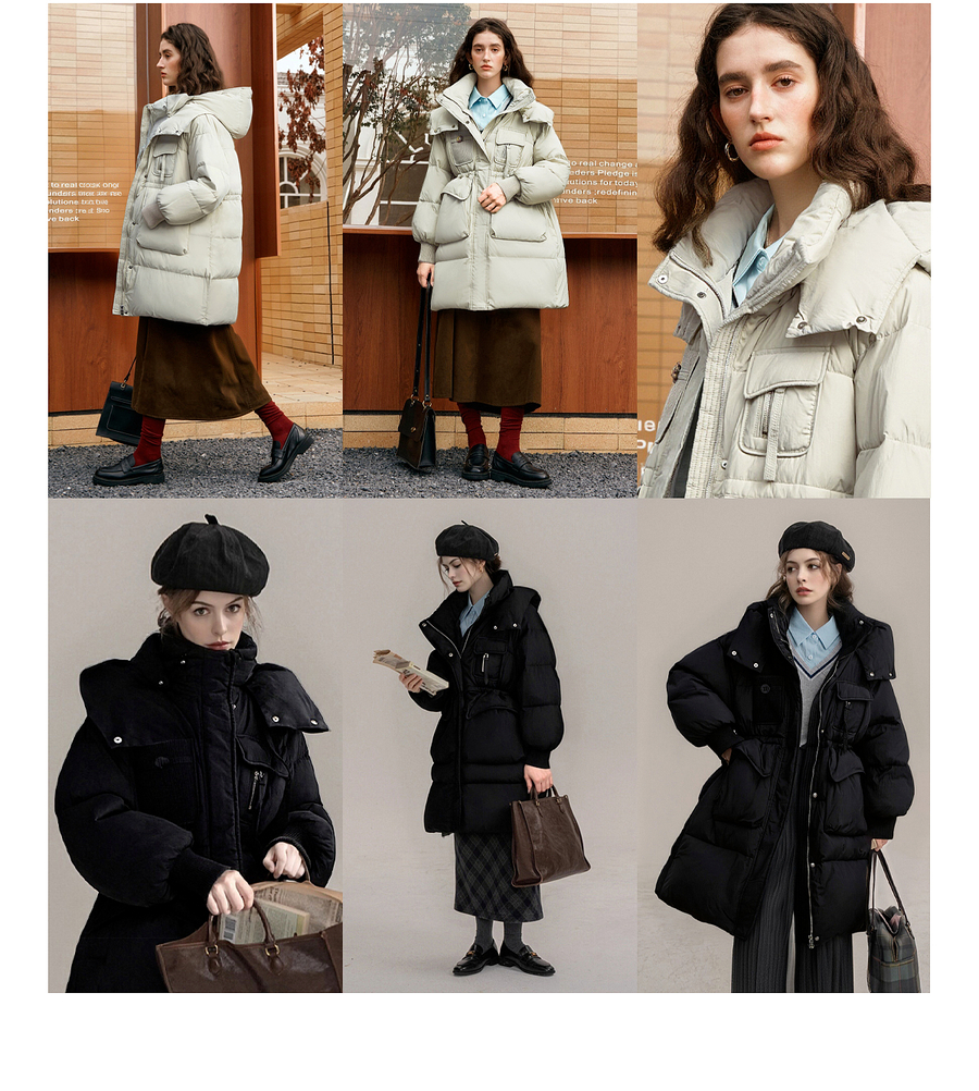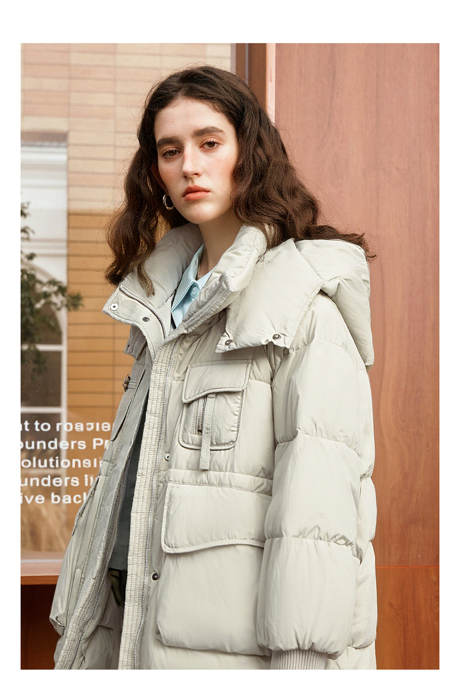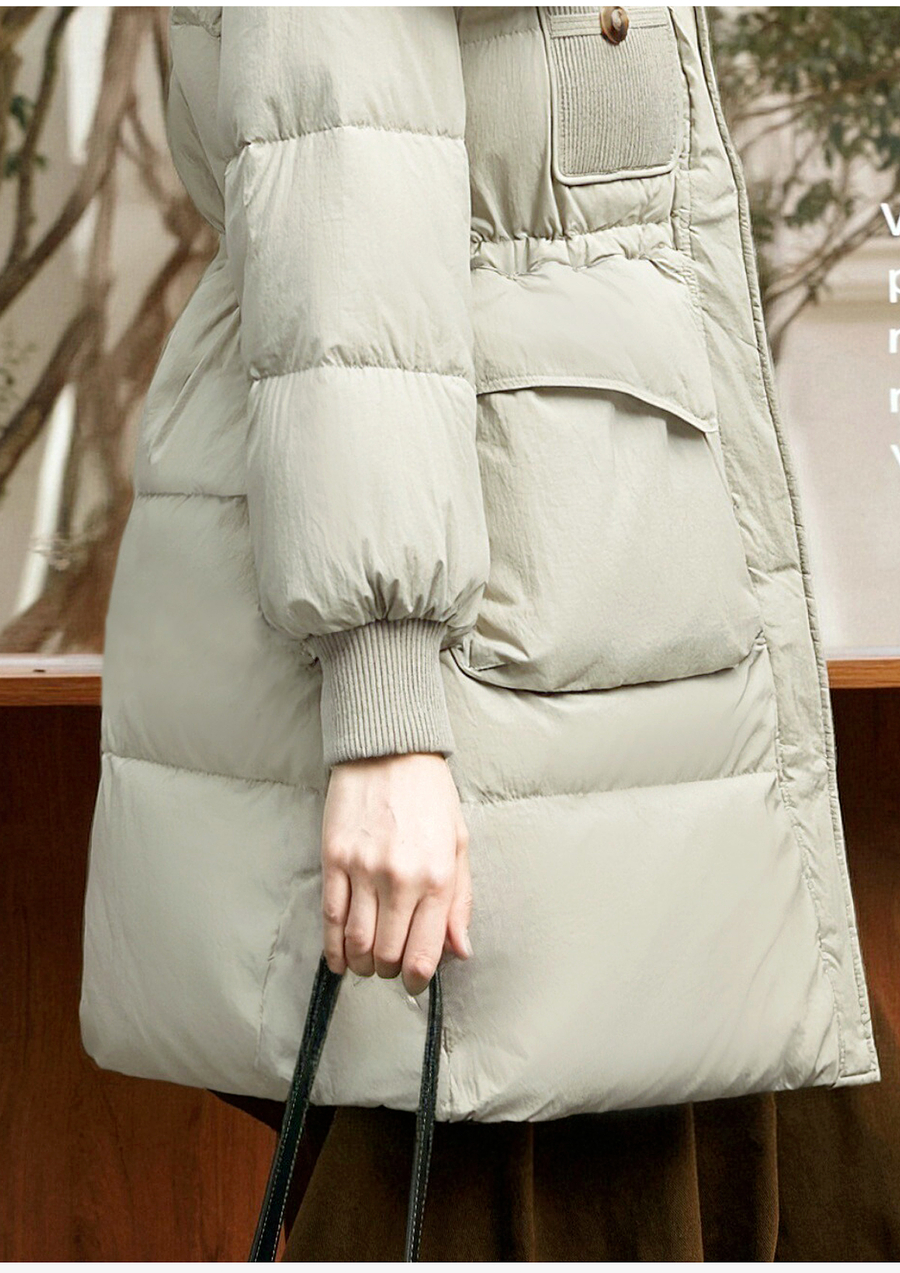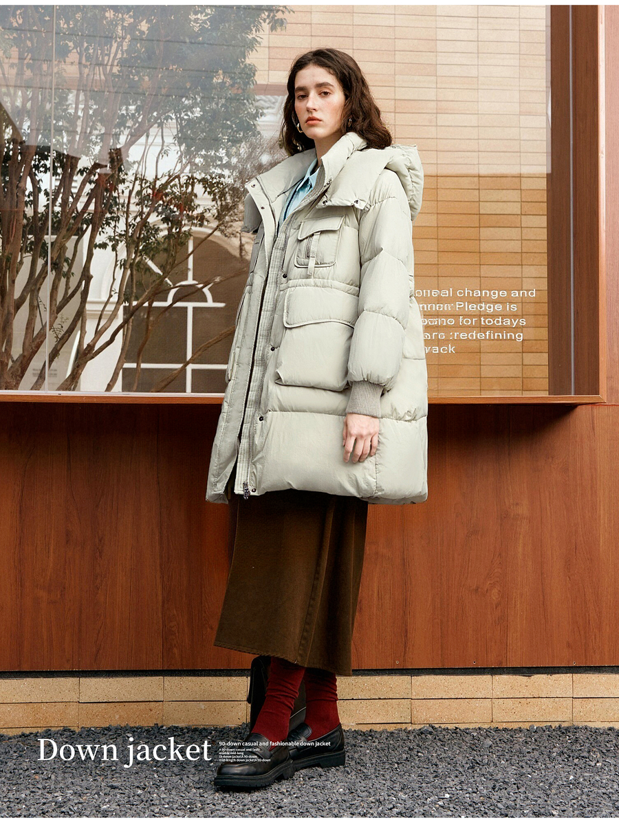 【90白鸭绒】连帽抽绳保暖羽绒服女冬季宽松休闲显瘦中长款外套