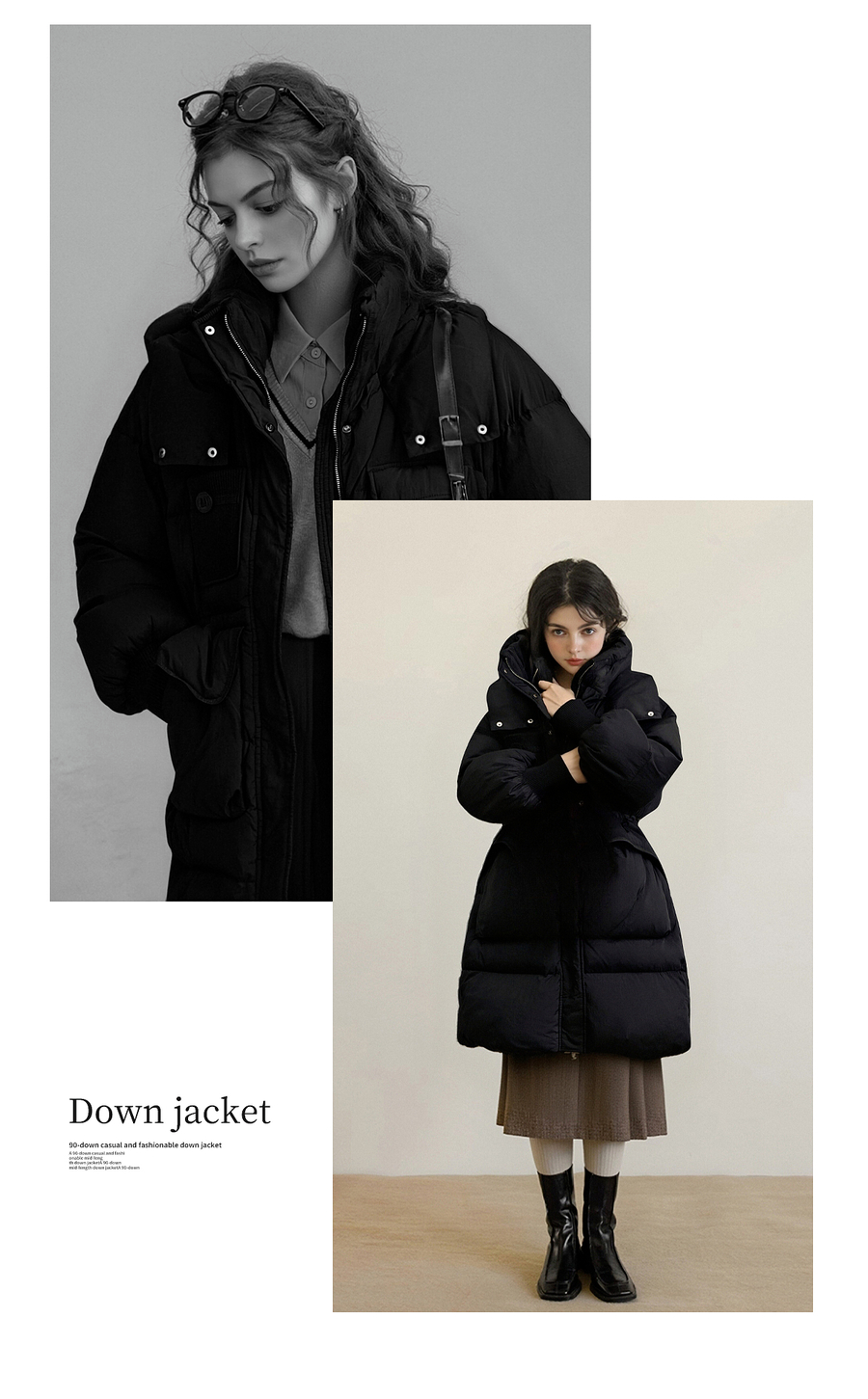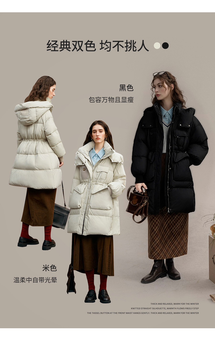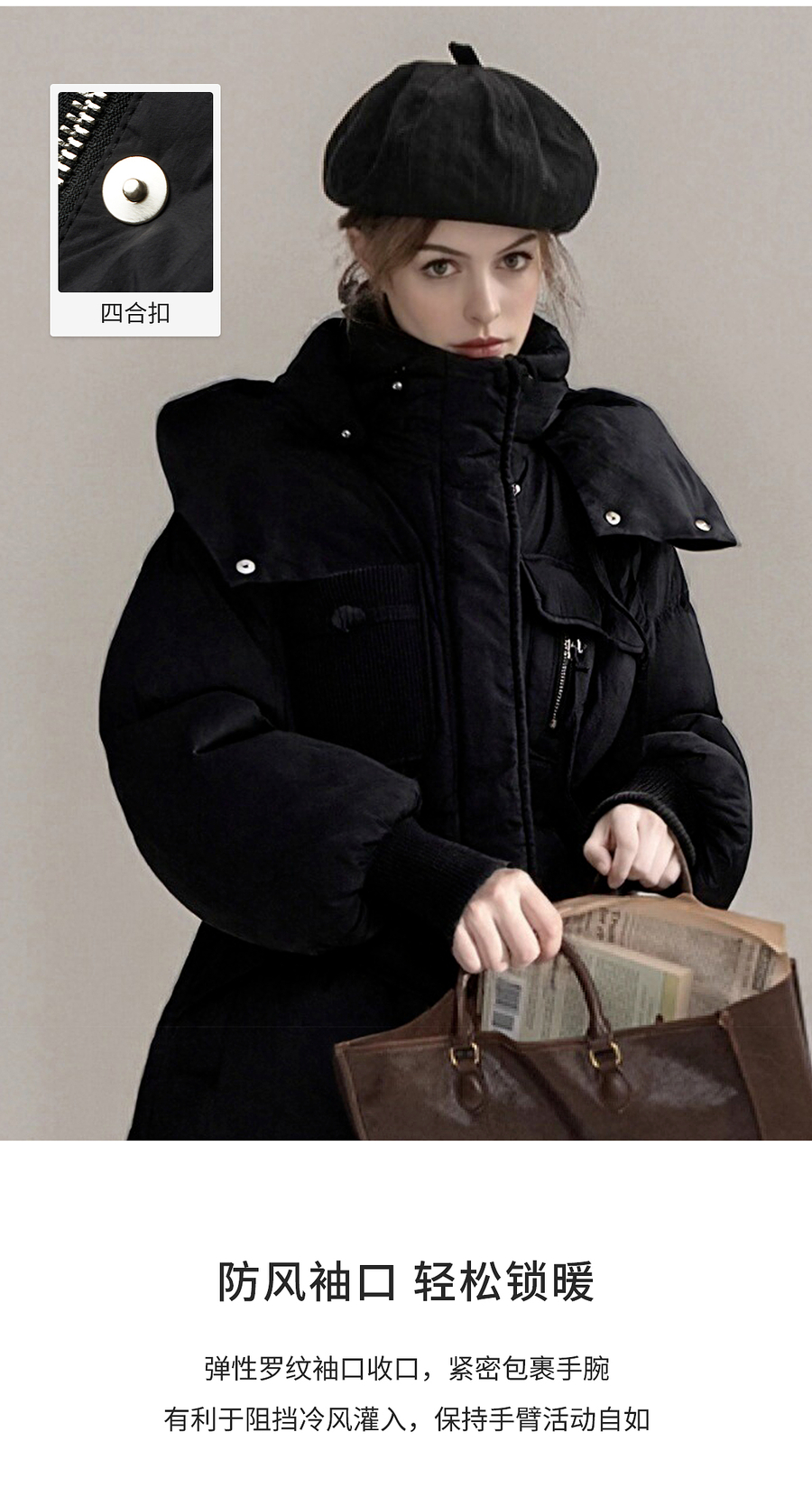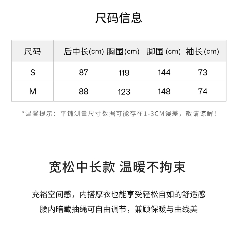【90白鸭绒】连帽抽绳保暖羽绒服女冬季宽松休闲显瘦中长款外套
