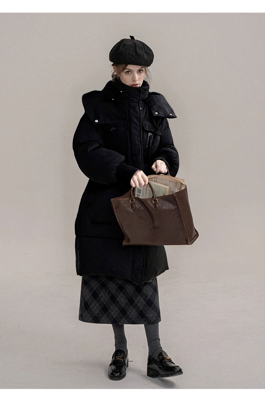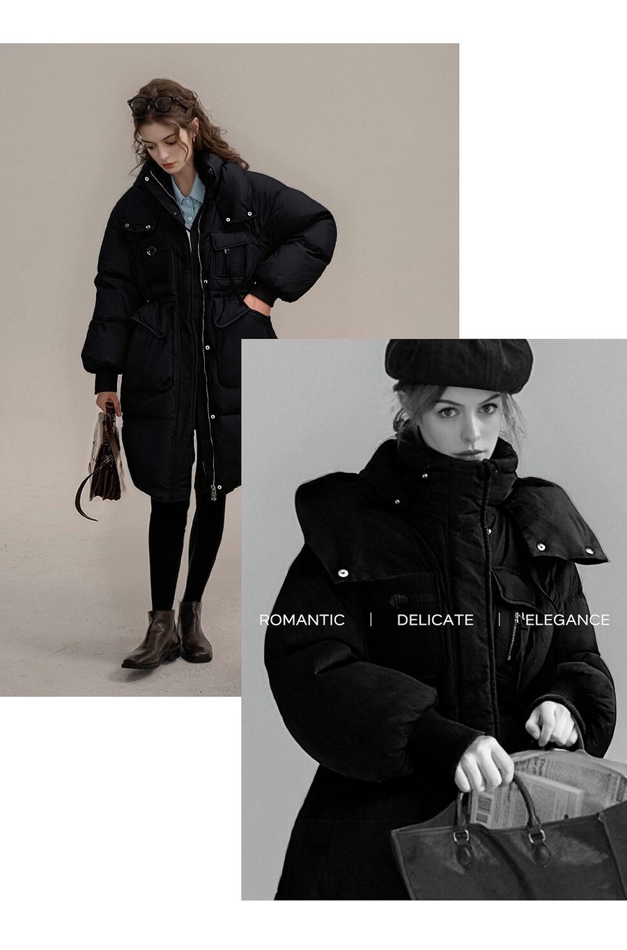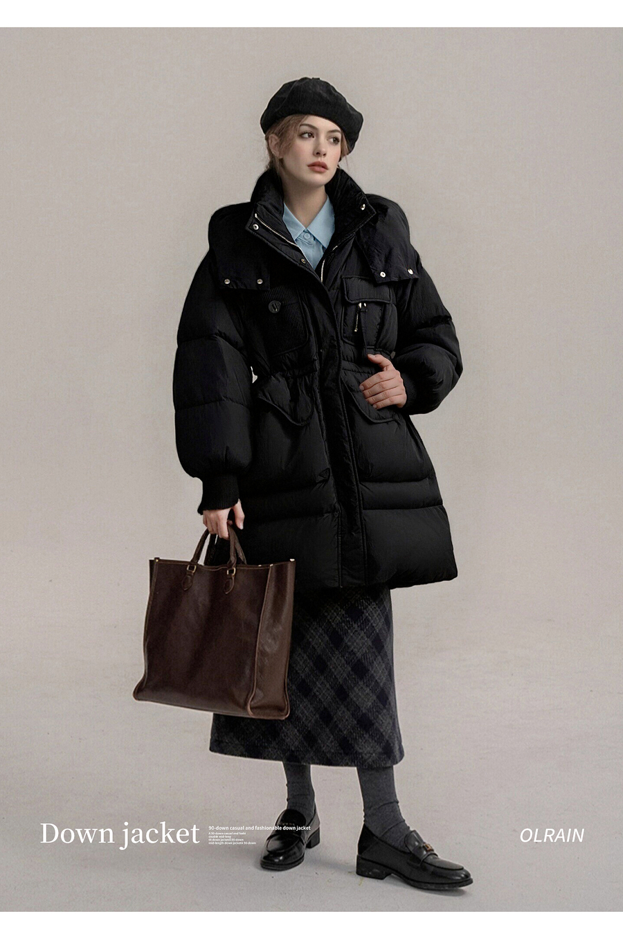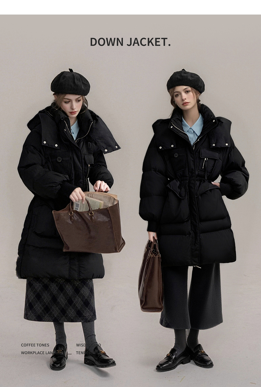 【90白鸭绒】连帽抽绳保暖羽绒服女冬季宽松休闲显瘦中长款外套