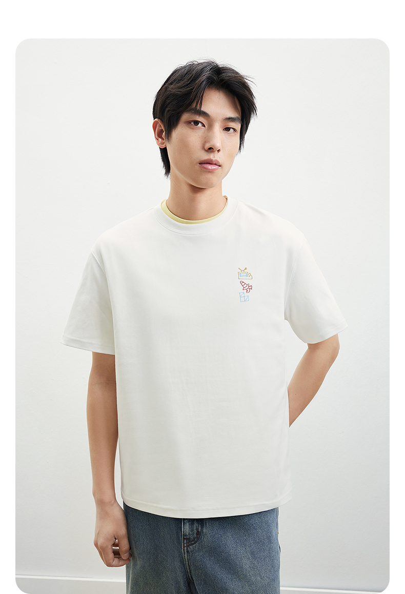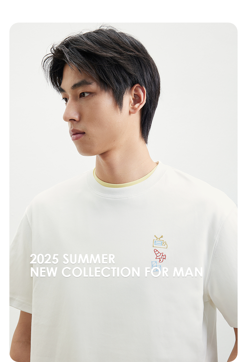 2025春夏新品GXG男士短袖经典圆领休闲百搭棉质男士短袖