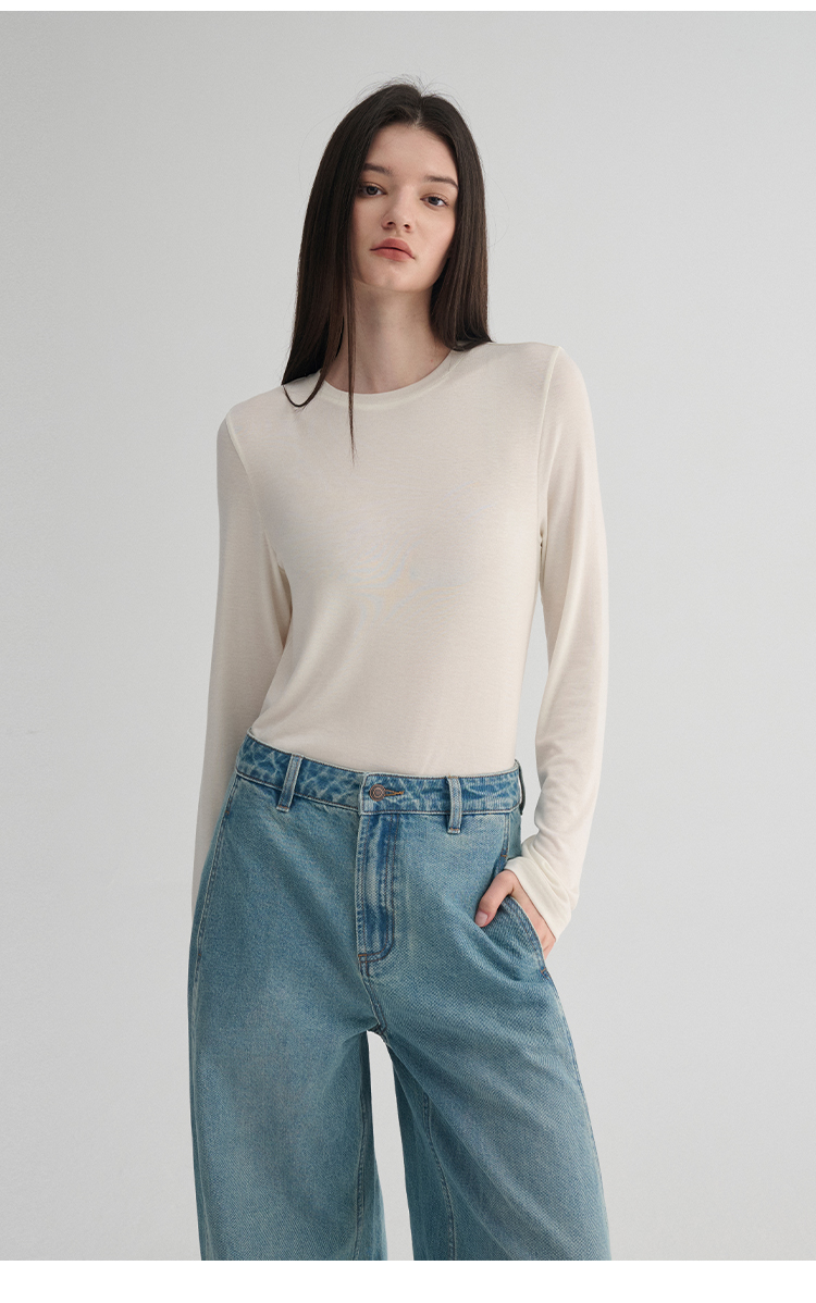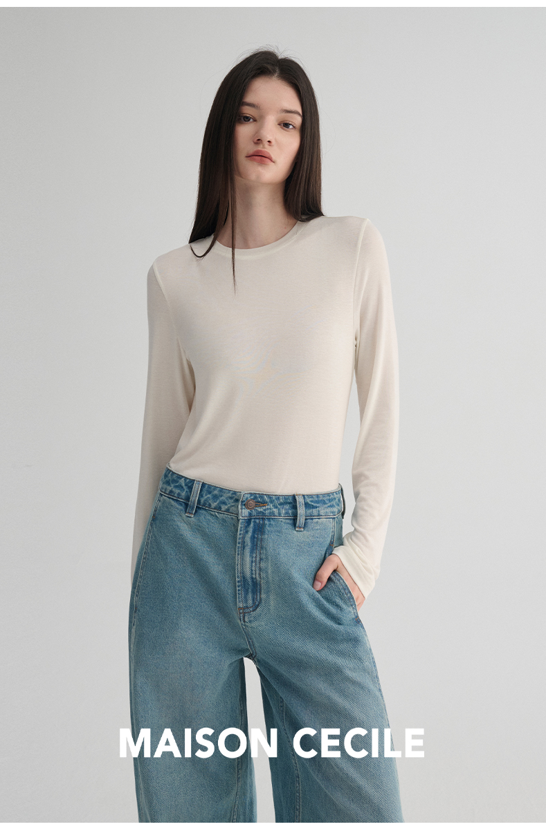 MAISON CECILE 三色/天丝羊毛细腻柔软百搭纯色圆领长袖打底衫