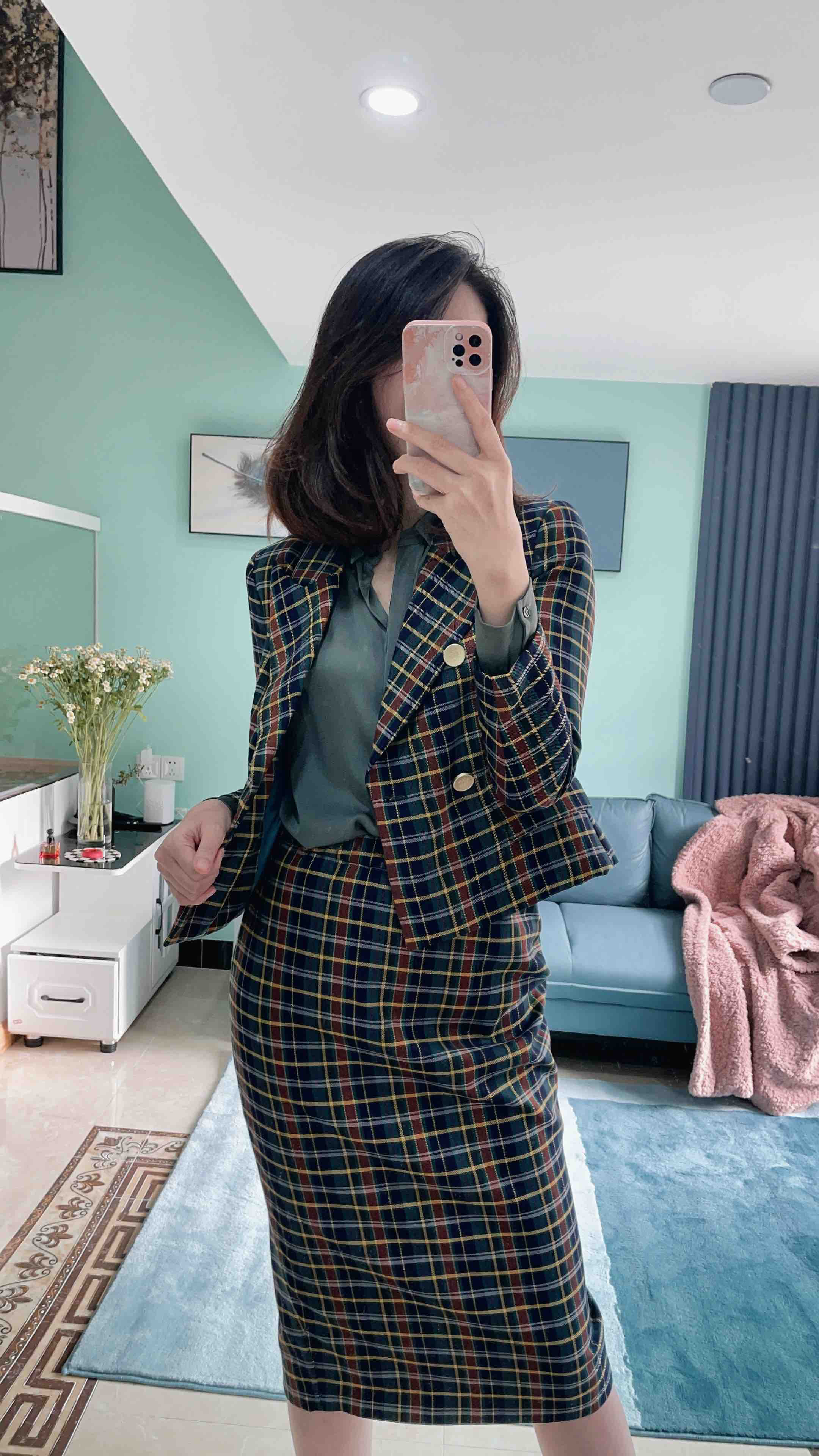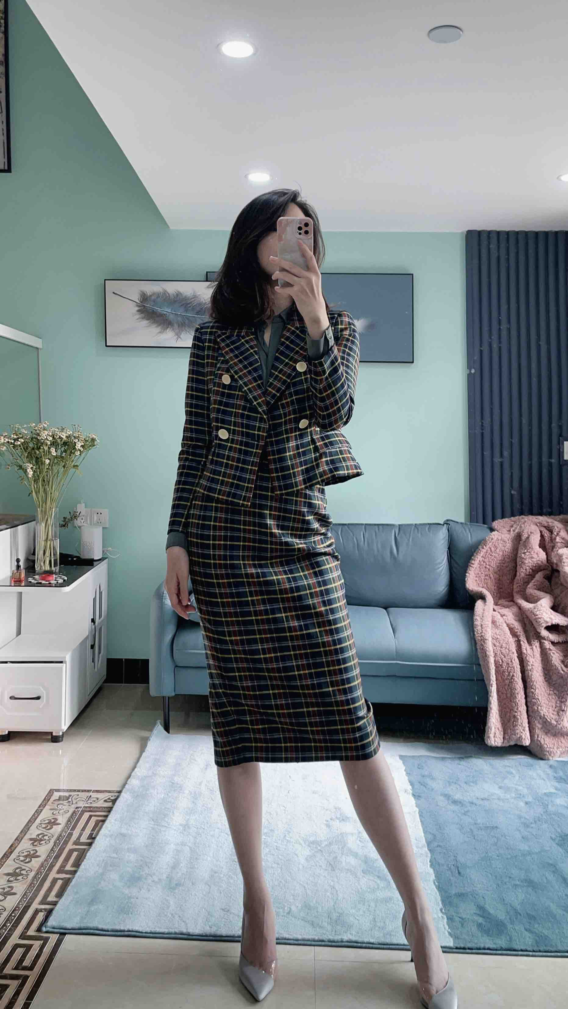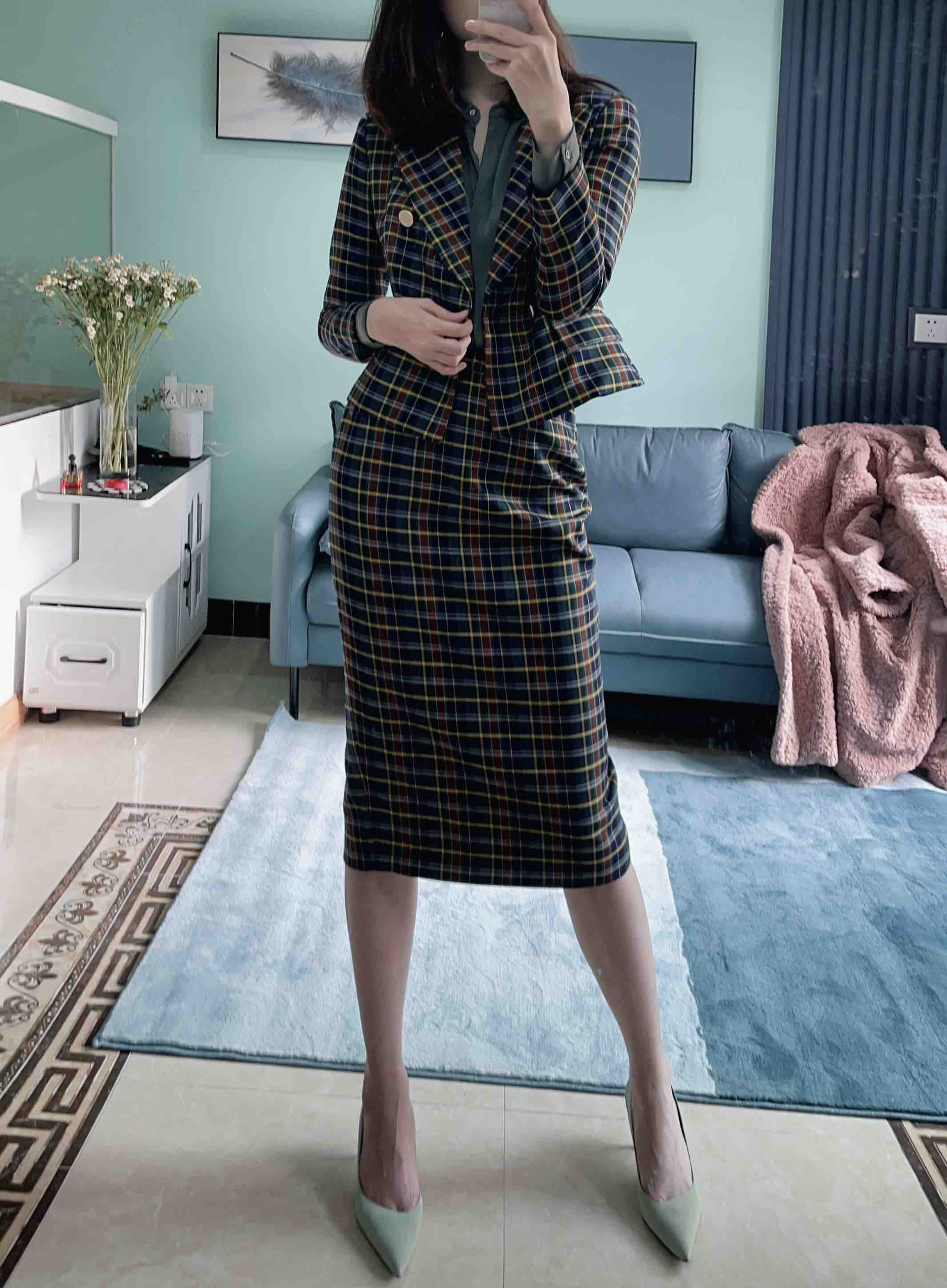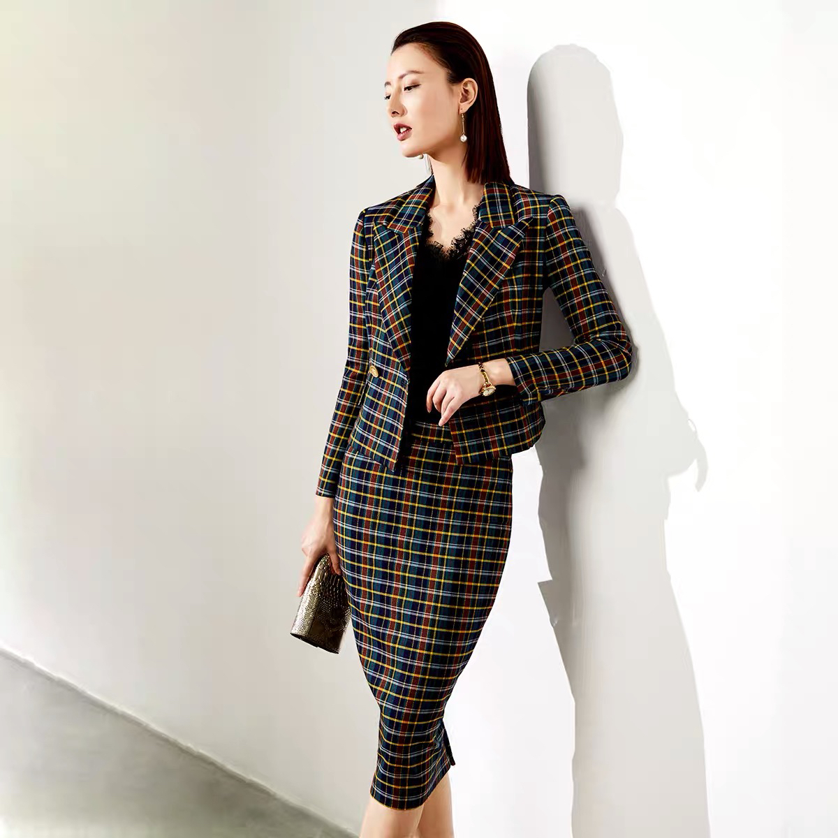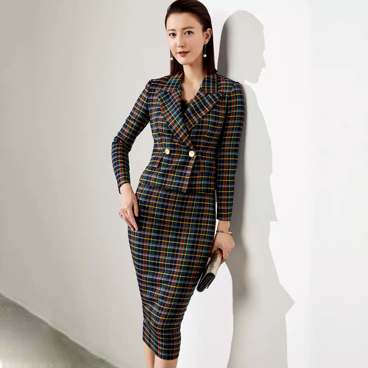颈袖添香-套裙-J20304610 “伦敦贵族”格纹套裙 复古