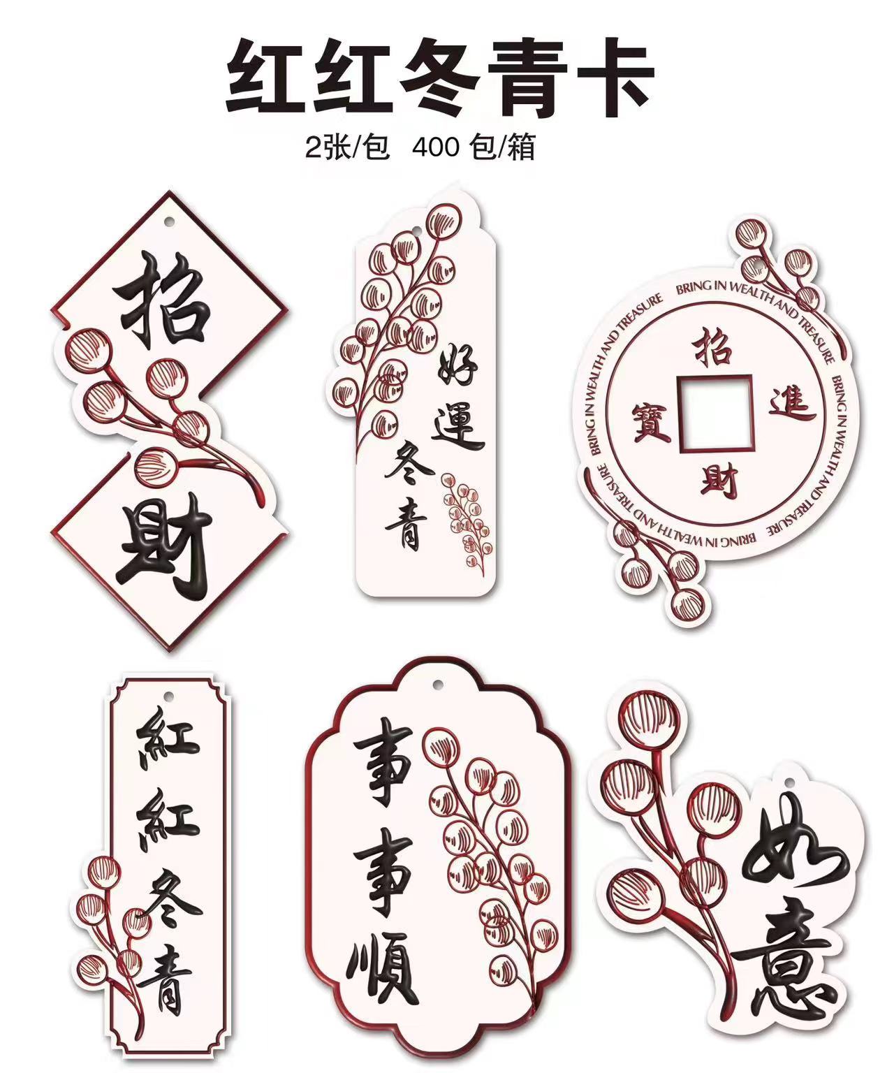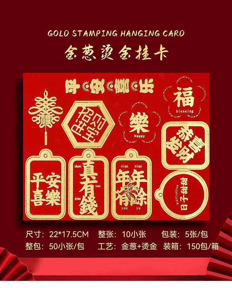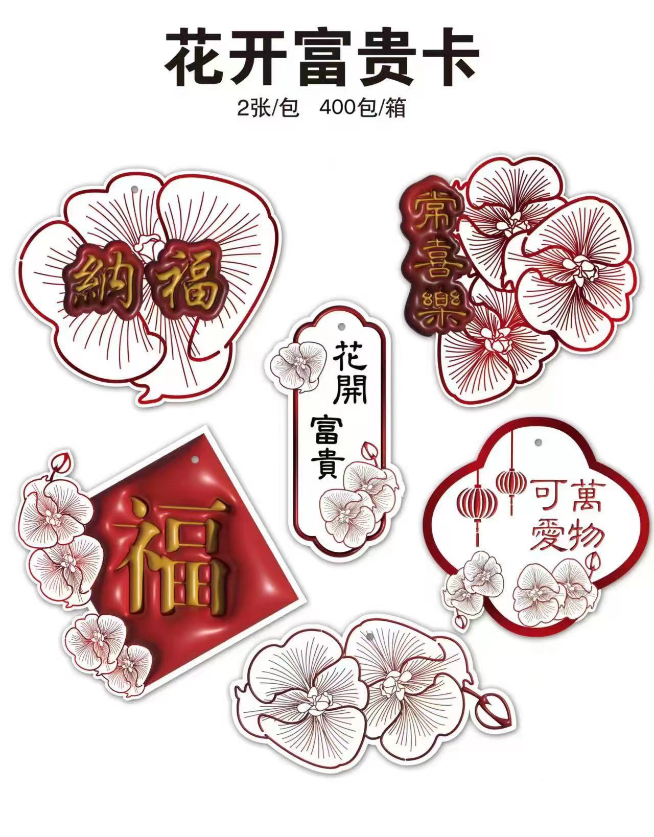 年宵花卡片(茹)-金葱烫金卡-烫金乔迁-新年贺卡-上上签-醒狮-喜庆贴纸