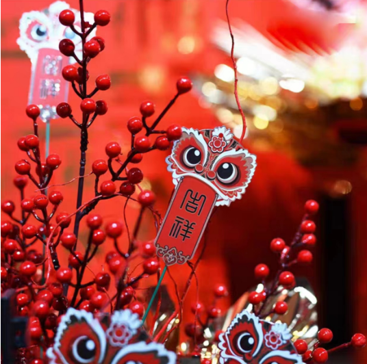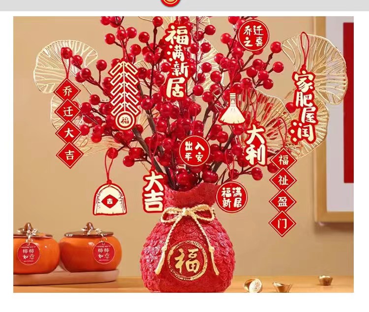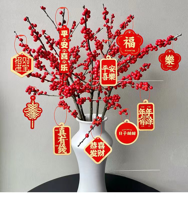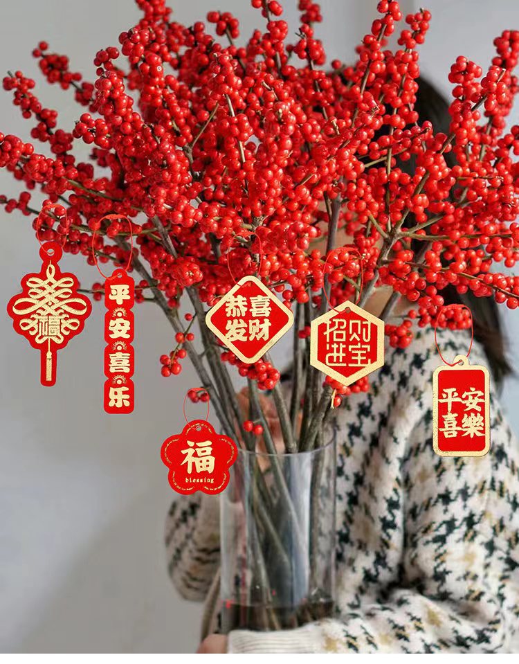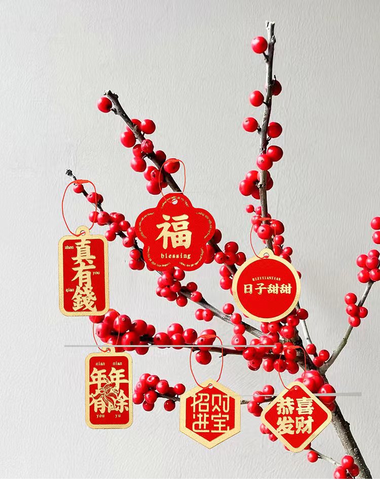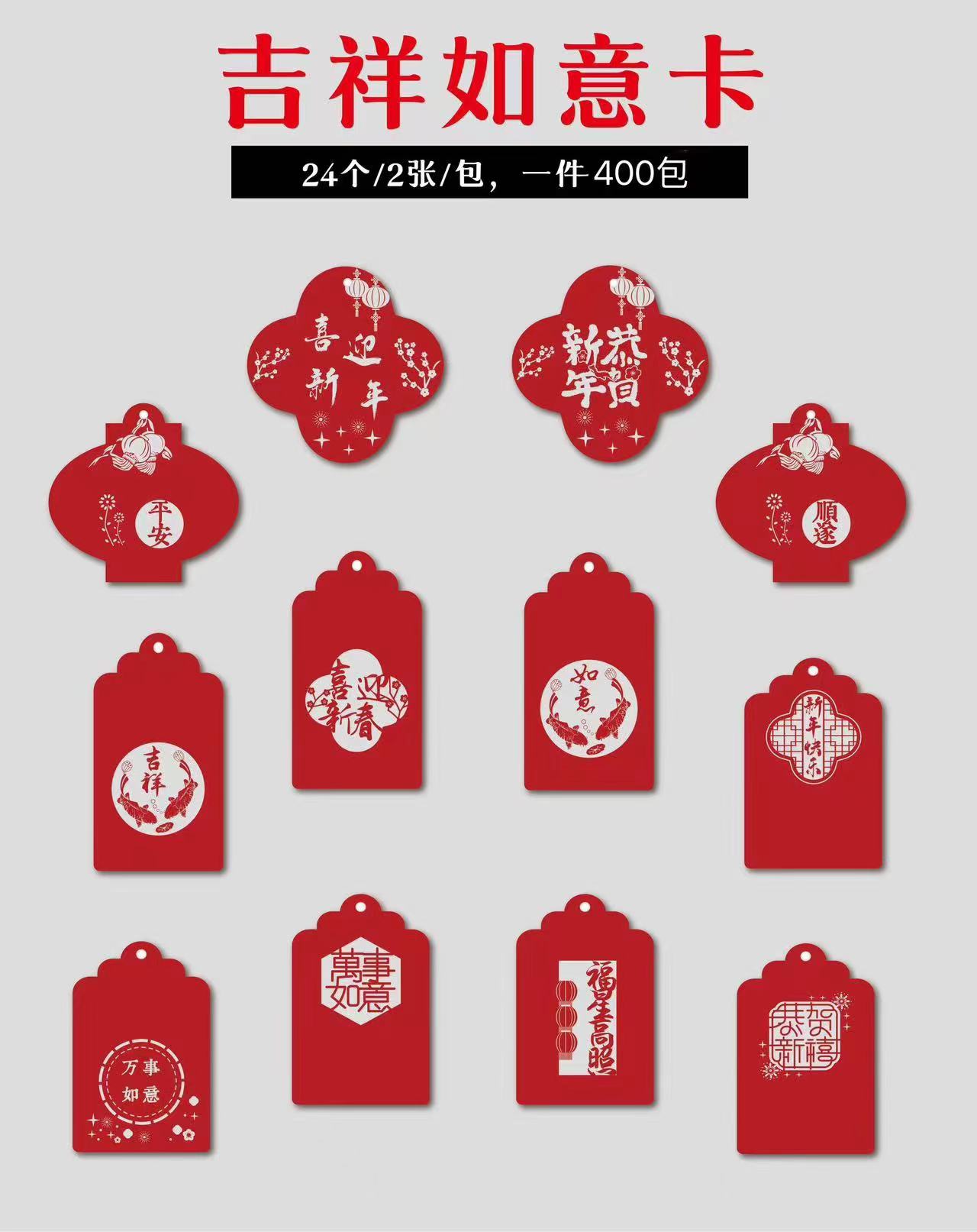年宵花卡片(茹)-金葱烫金卡-烫金乔迁-新年贺卡-上上签-醒狮-喜庆贴纸