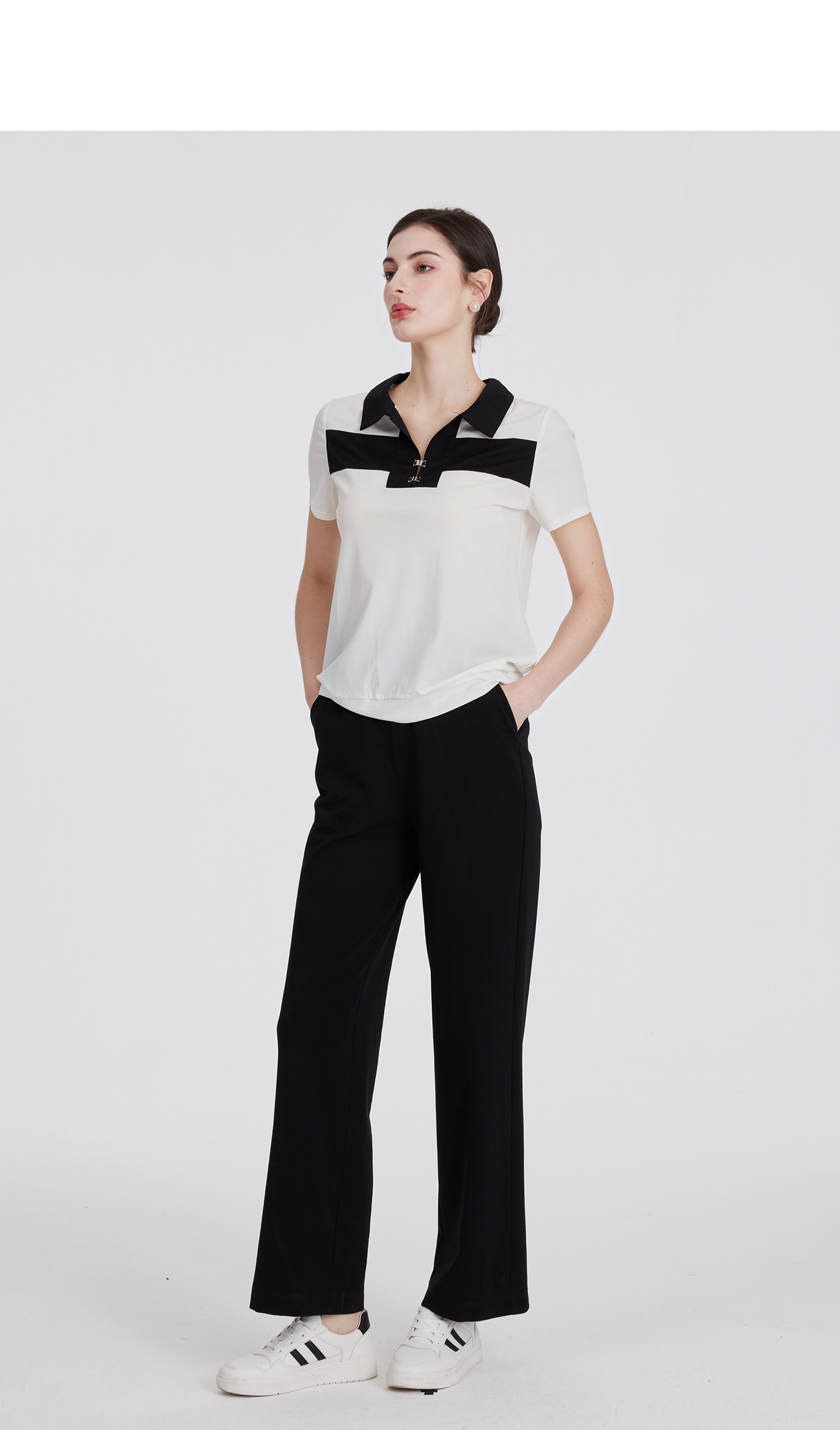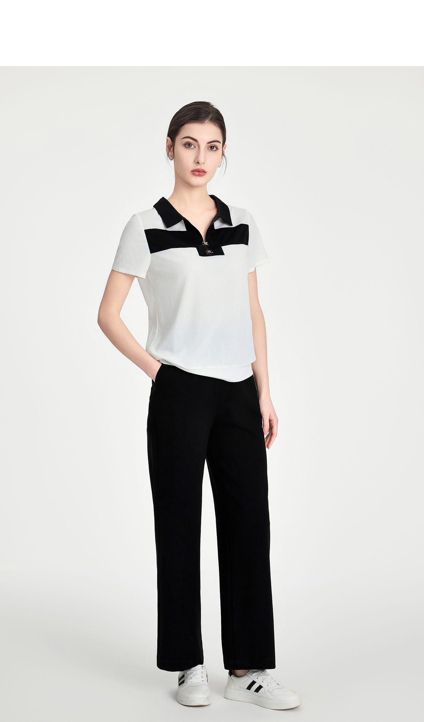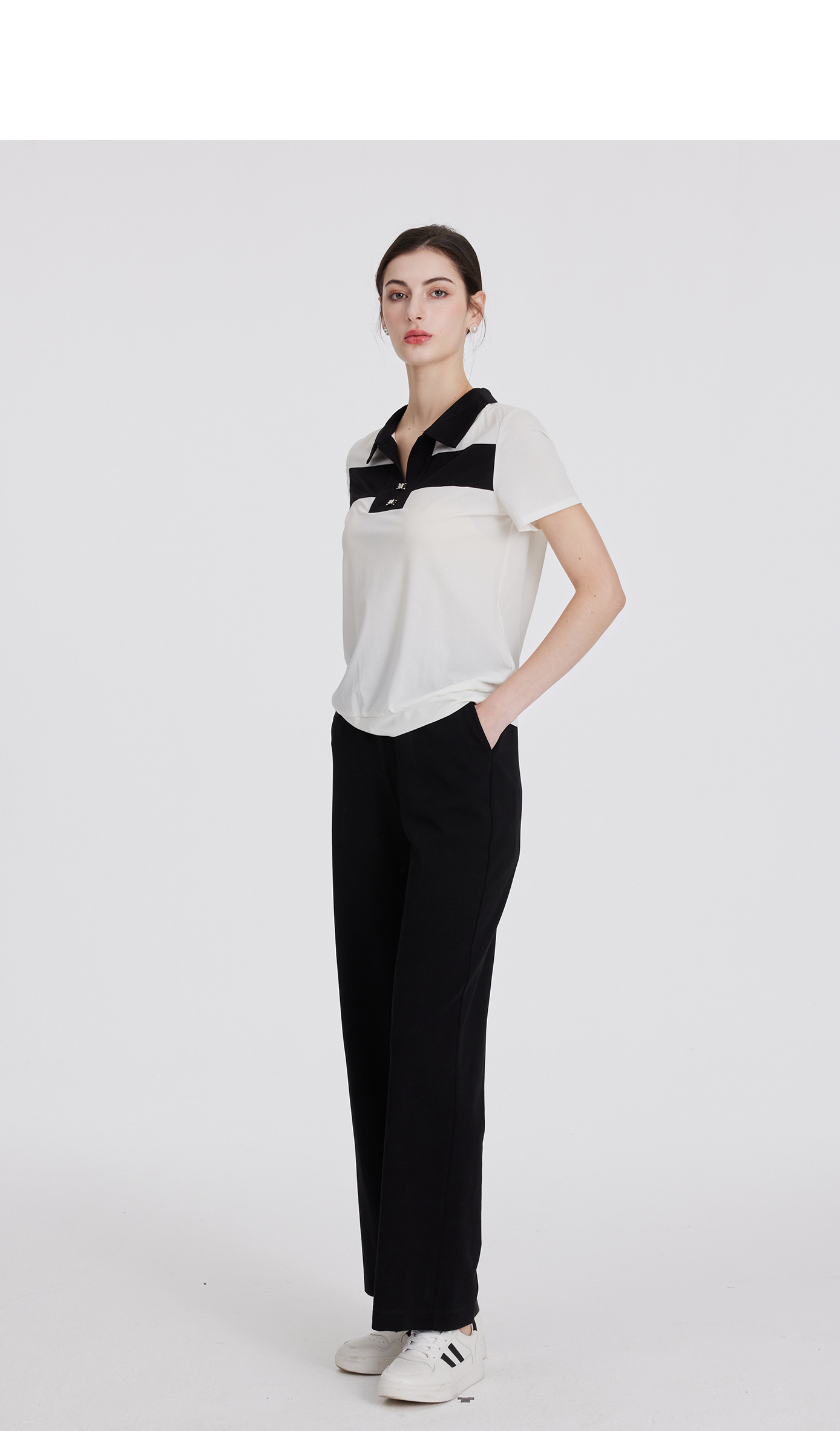 司歌休闲翻领T恤套头弹力短袖上衣F891052Y