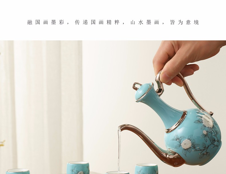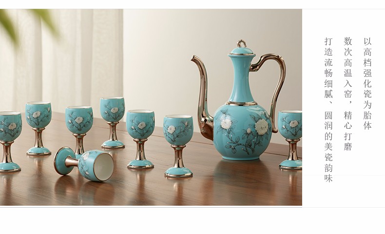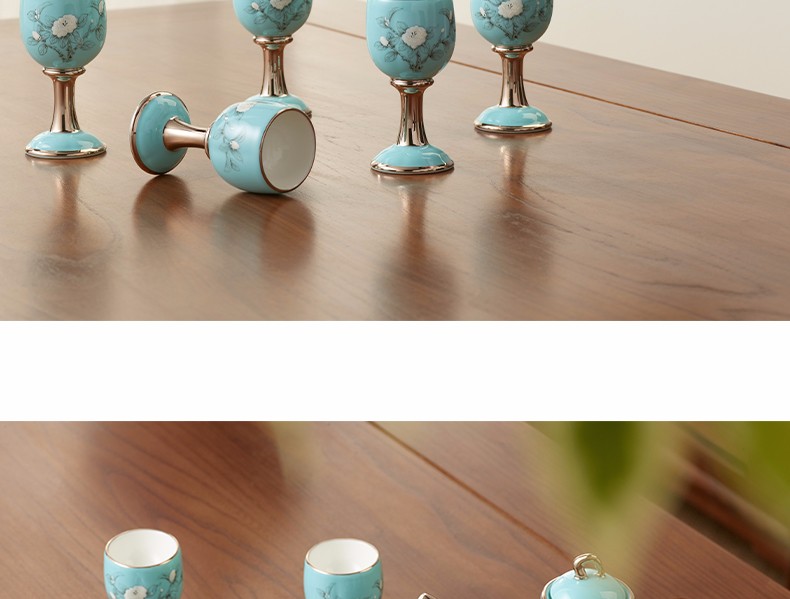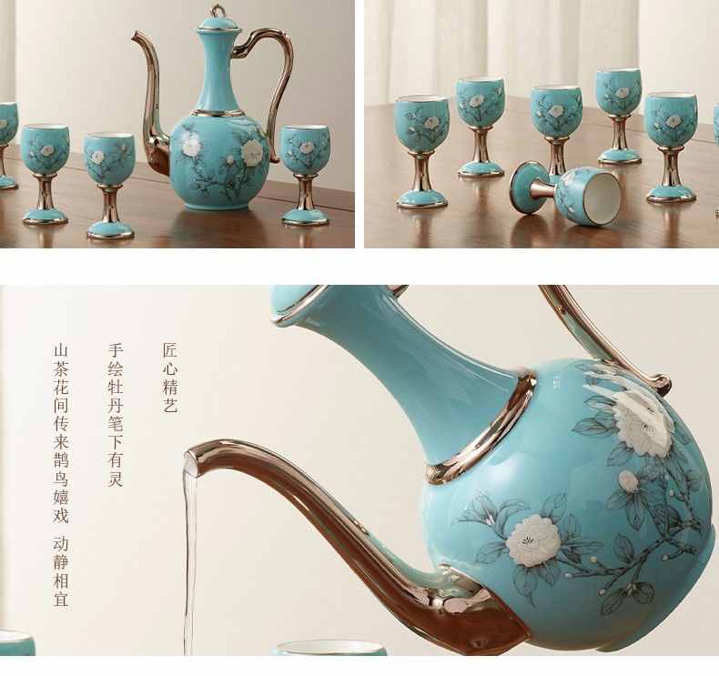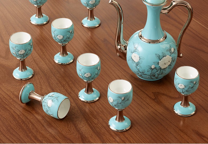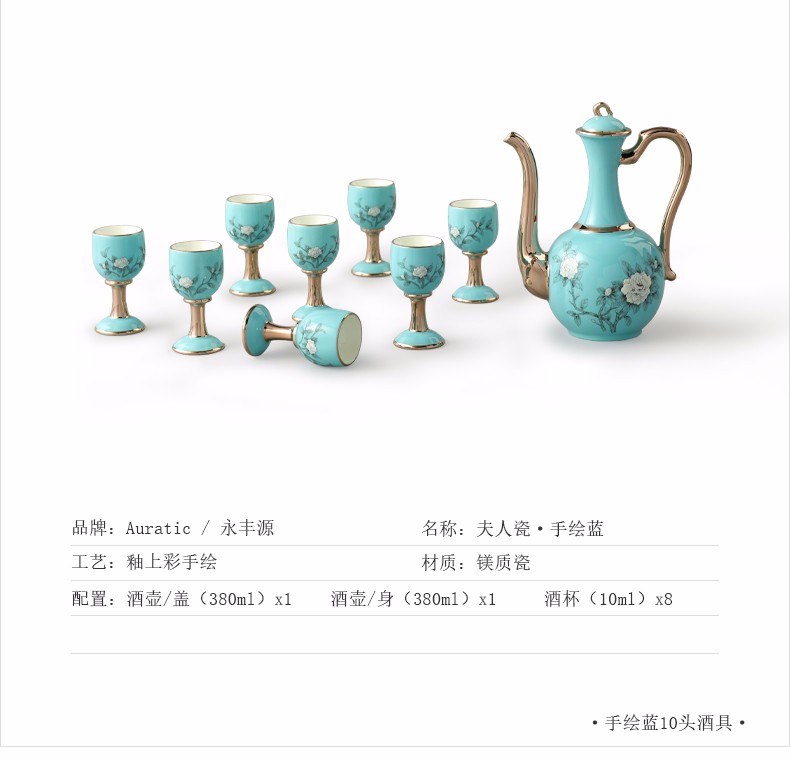【国瓷·永丰源】夫人瓷手绘蓝 白酒杯陶瓷10头酒具套装
