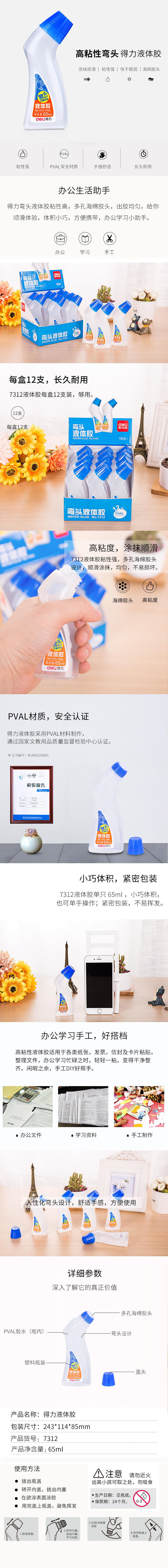 得力7312弯头液体胶(蓝)(瓶)