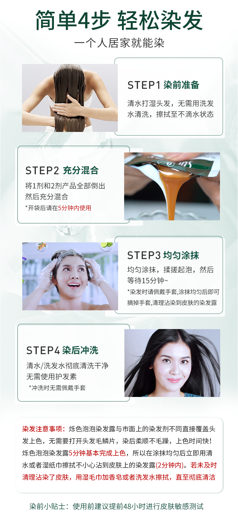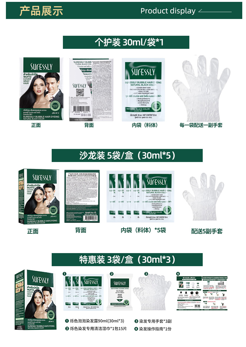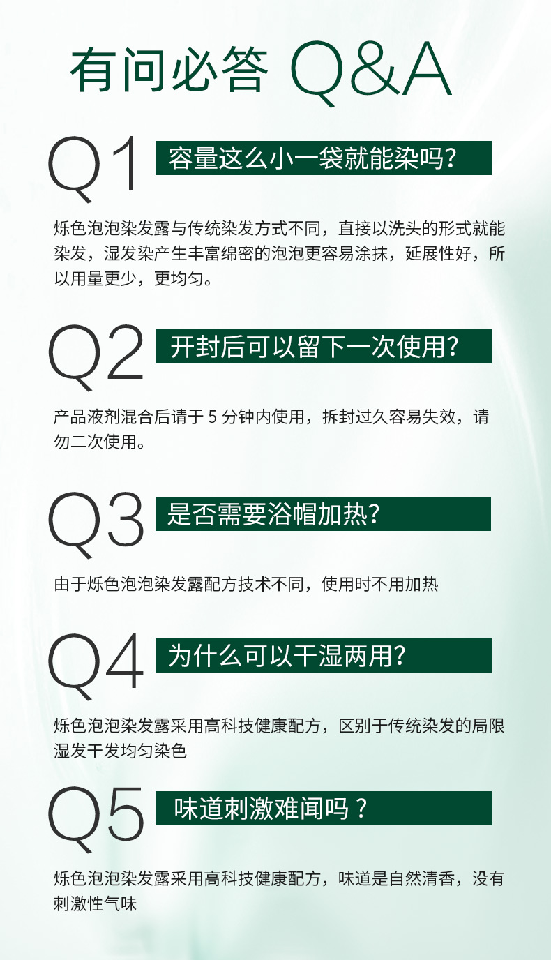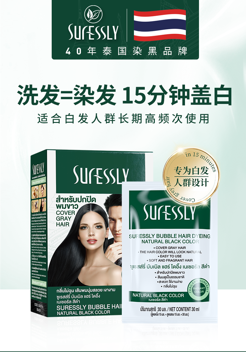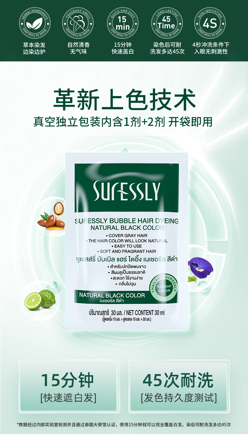 【烁色泡泡染发露】植物染发40年老品牌!不采用传统漂染,用法跟洗发一样简单!温和不刺激,清香无异味!15分钟快速遮白发,持久锁色!独立包装,自助便捷!【QJ-J】