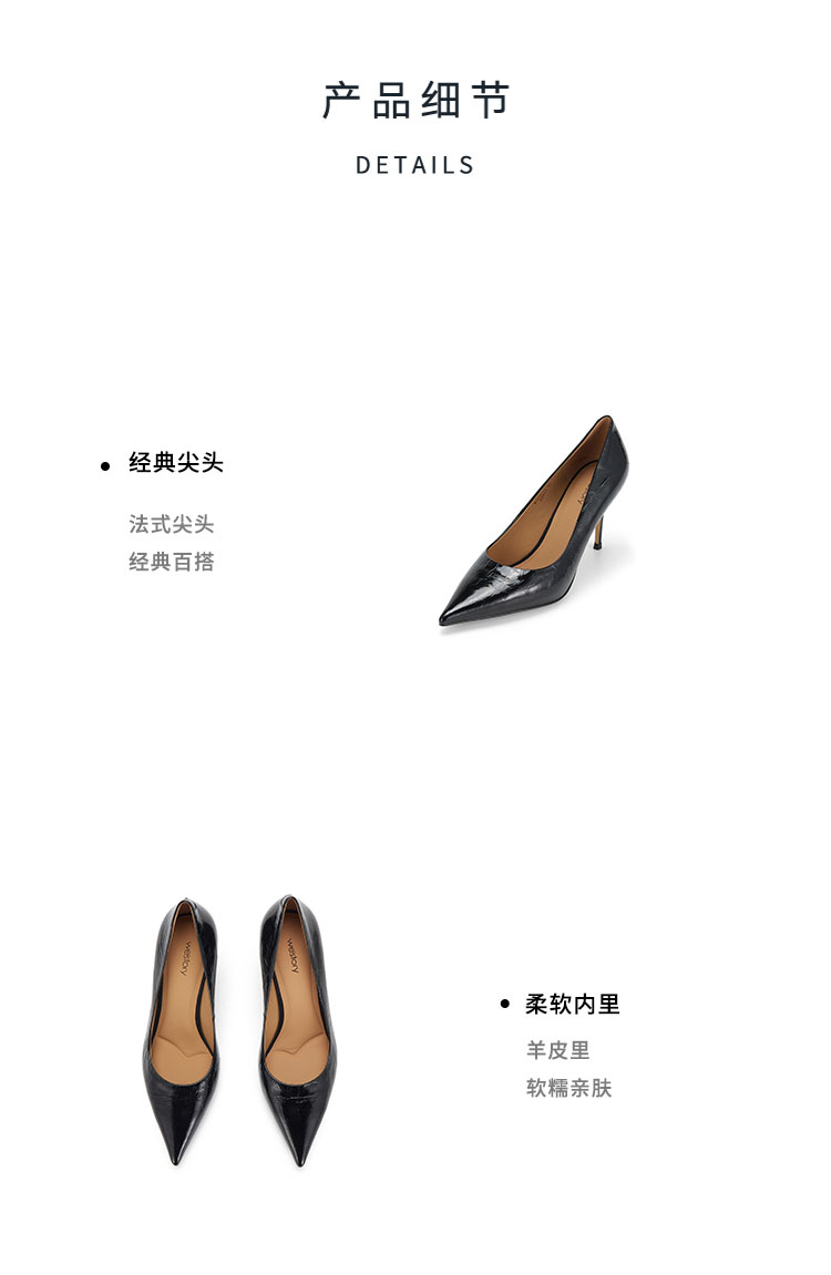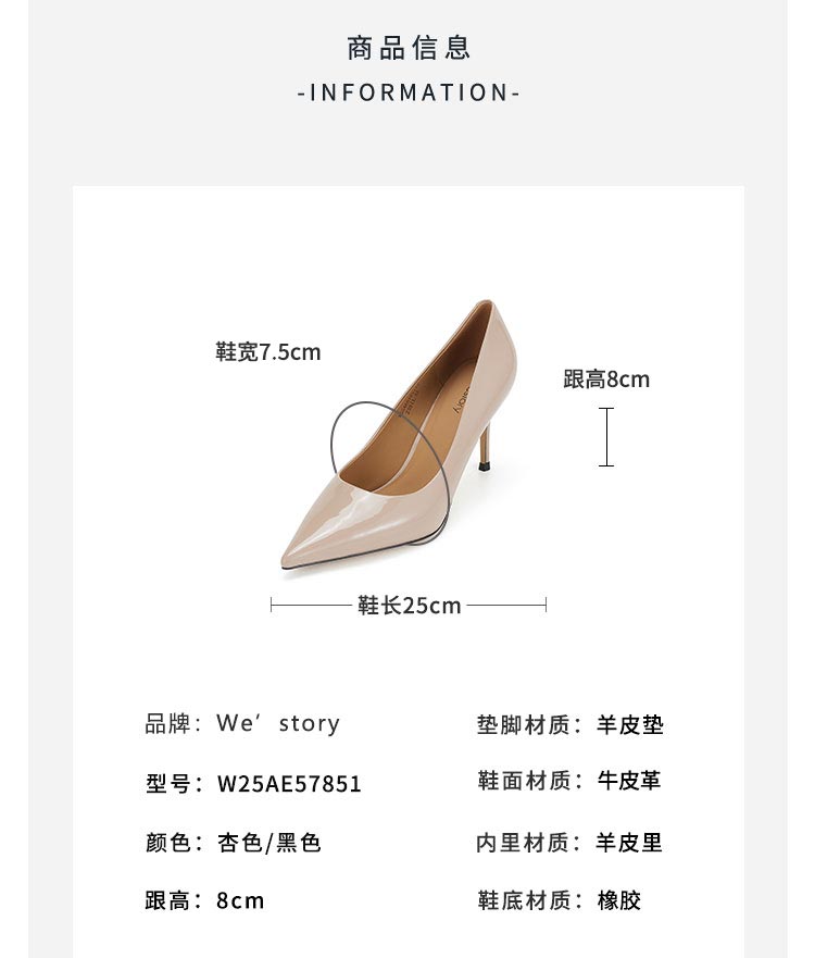 Westory2025年春季尖头高跟光面牛皮通勤百搭浅口单鞋W25AE57851
