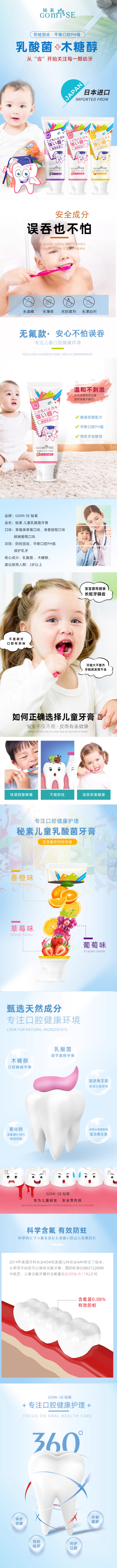 【18元会员福利】GOMISE秘素儿童果味牙膏70g益生元儿童低氟牙膏去黄防蛀去牙菌斑