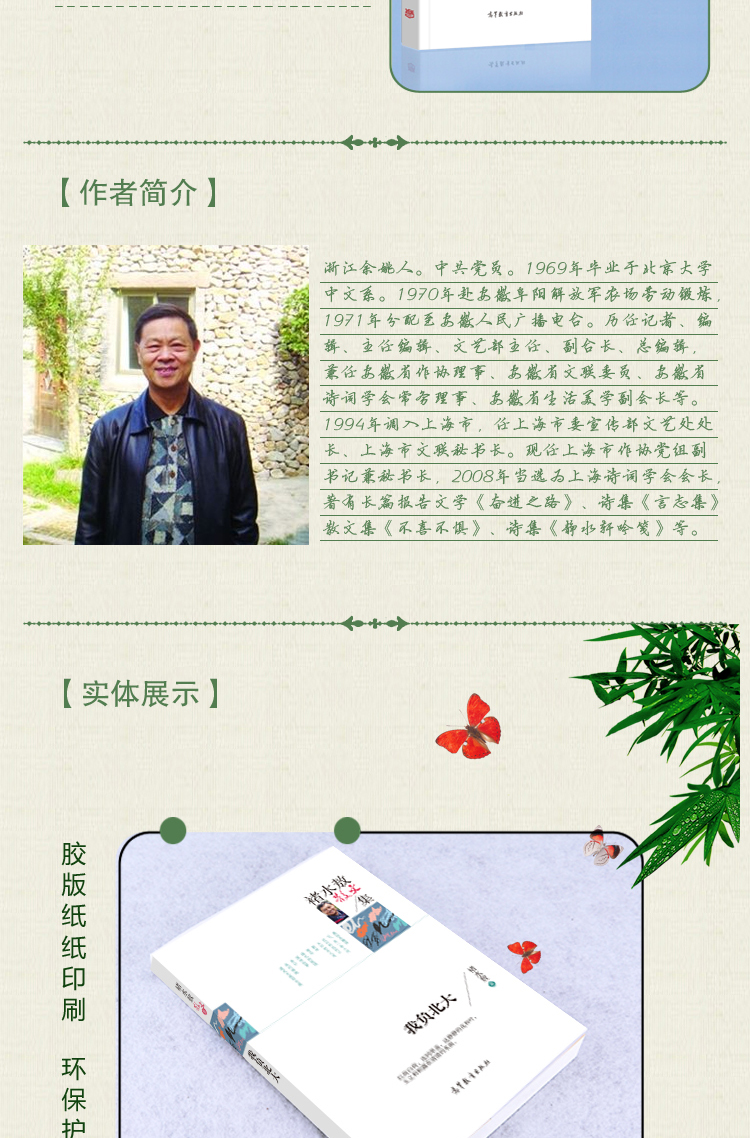 尽管由于诸种原因,自己不曾把“北大魂”牢守在身,也不曾在做学问上下功夫,但是,毕竟我不能离开文学,总是一有闲空就喜欢看点书,写点诗文。因此,在写作上,也不能说一点没有成绩。多年来,我从事的文学样式主要是散文、随笔、报告文学、文学评论和旧体诗词。这本散文随笔选集里的文字是我写过的东西里自己比较喜欢的。说是比较喜欢,也就是不十分满意,聊以记录自己心灵历程中的一些印痕而已。且不说青春时代未名湖畔的梦想,即便就写作而言,我也同样觉得自己实在愧对北大!
