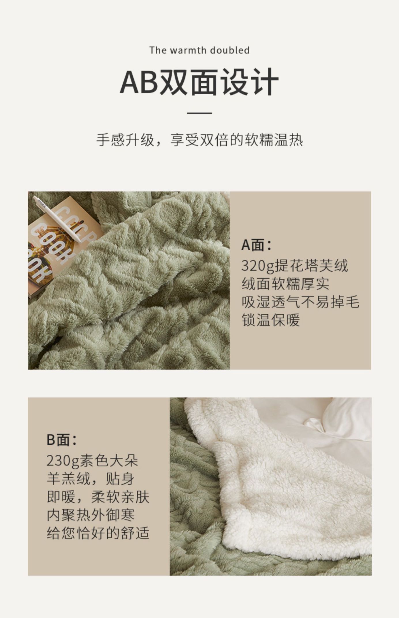 A面塔芙绒,B面羊羔绒。
