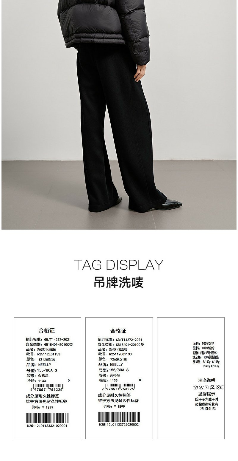 NEELLY纳俪商场同款冬新款时尚轻盈龟背羽绒服女90白鸭绒保暖外套N25112L01133