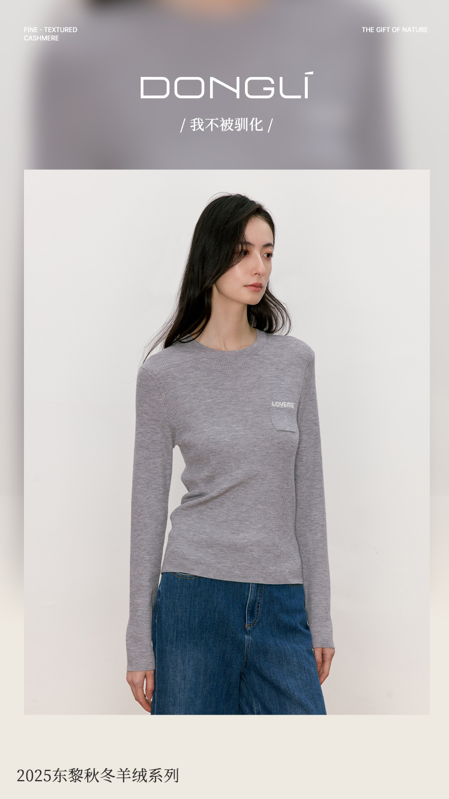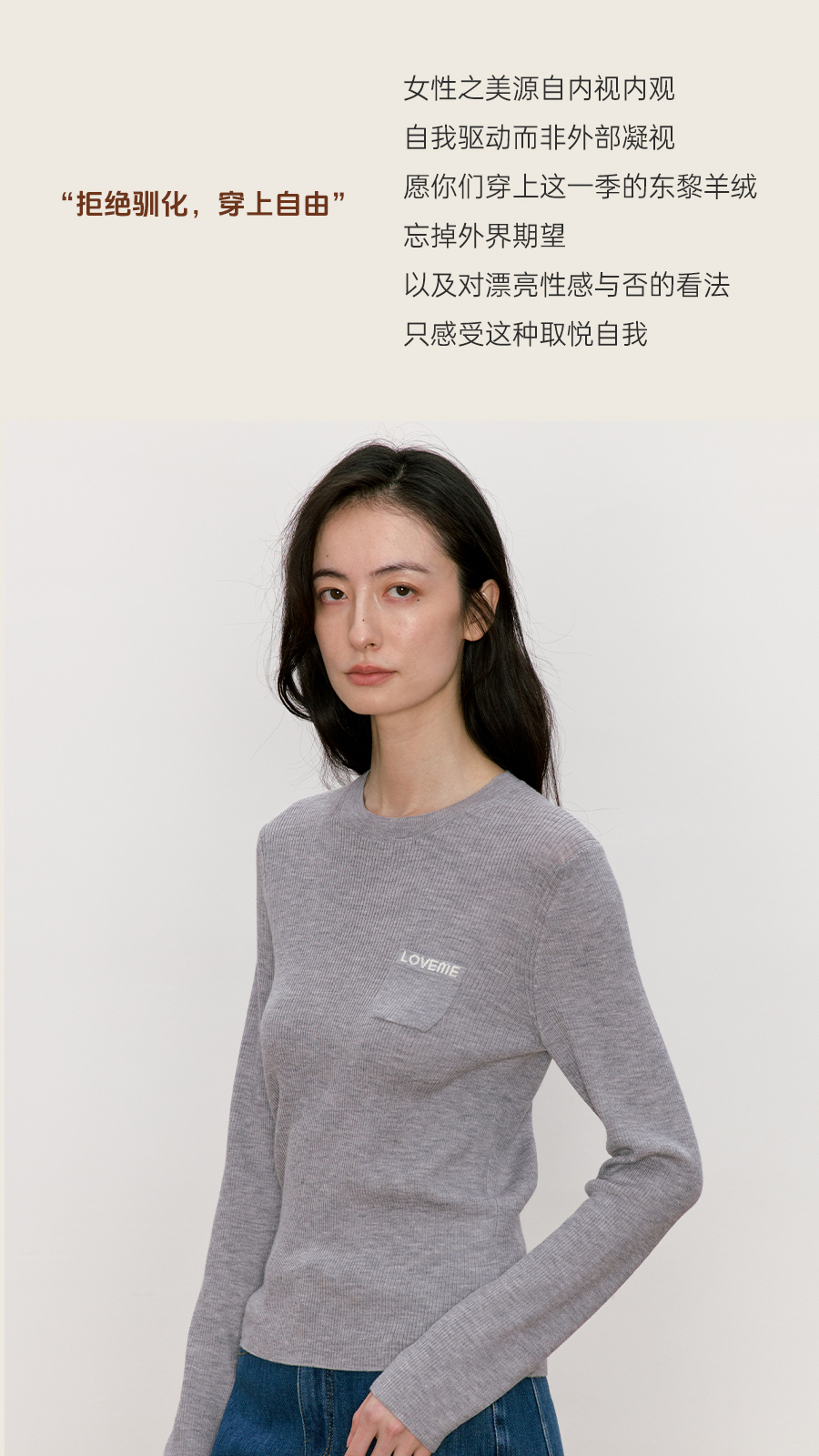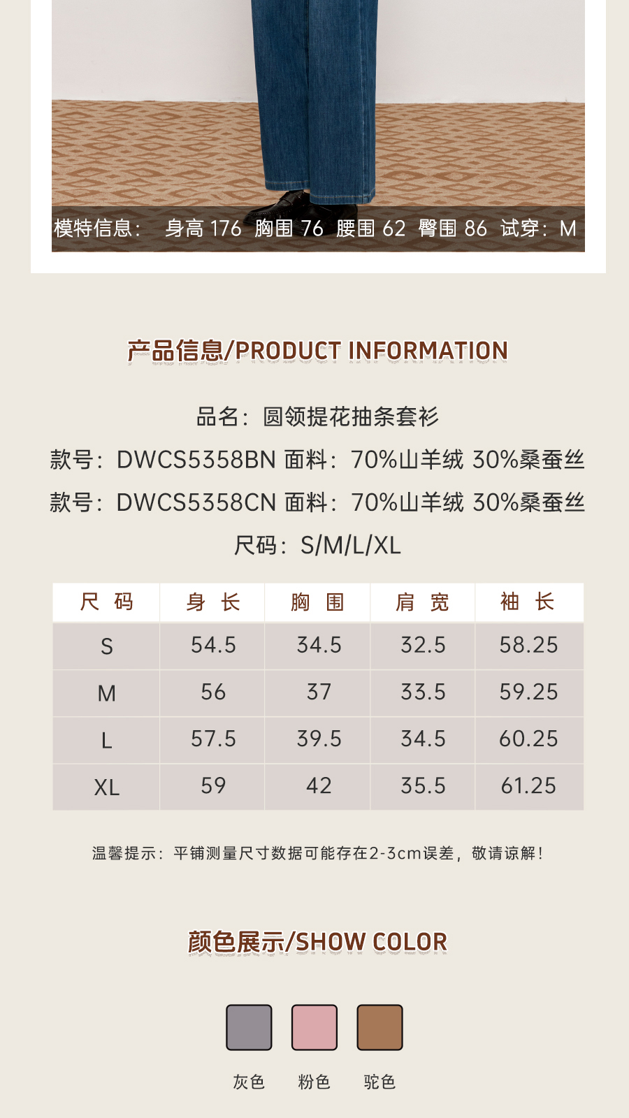 东黎 • 我不被驯化 丝绒女士秋季圆领提花抽条套衫 5358