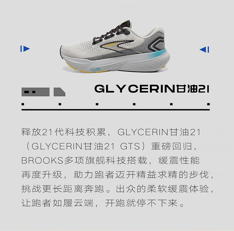 布鲁克斯BROOKS甘油21新款跑步鞋男注氮科技透气运动鞋缓震跑鞋Glycerin