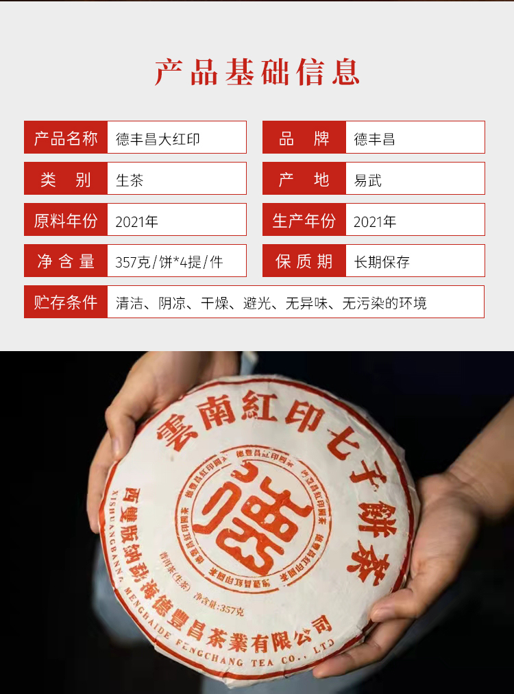 生普 |德丰昌 2021年 大红印 古树生茶饼357g