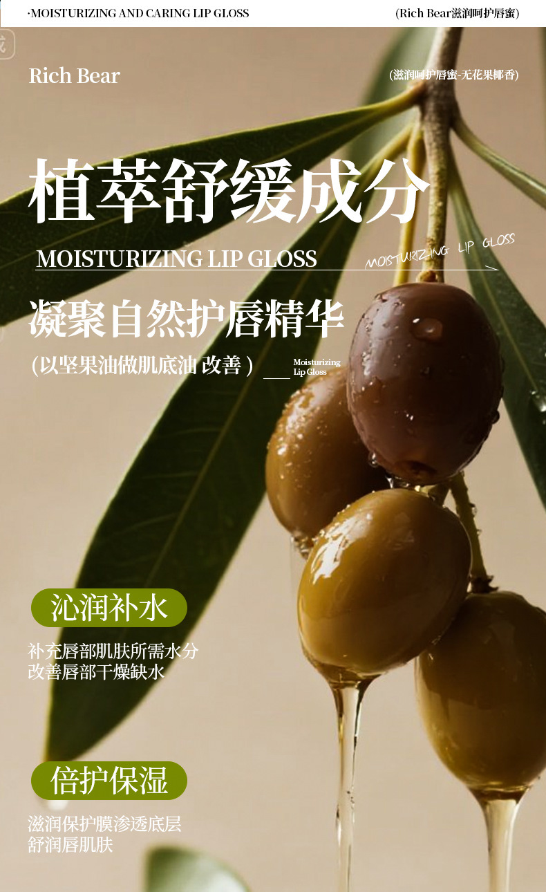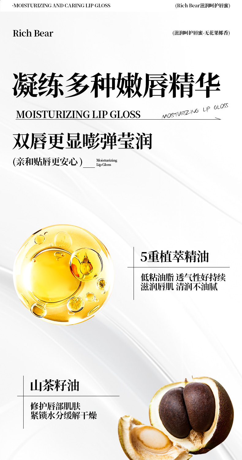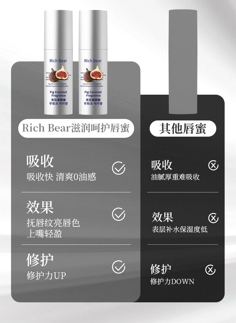 【RICH BEAR无花果椰子唇膏】维生素E唇部 液润唇膏补水保湿滋润唇油