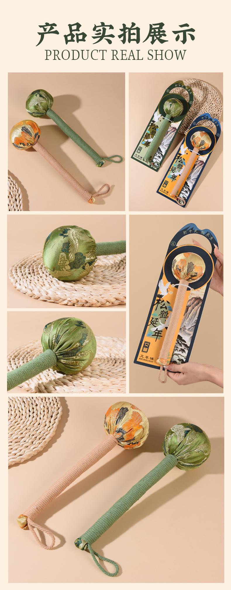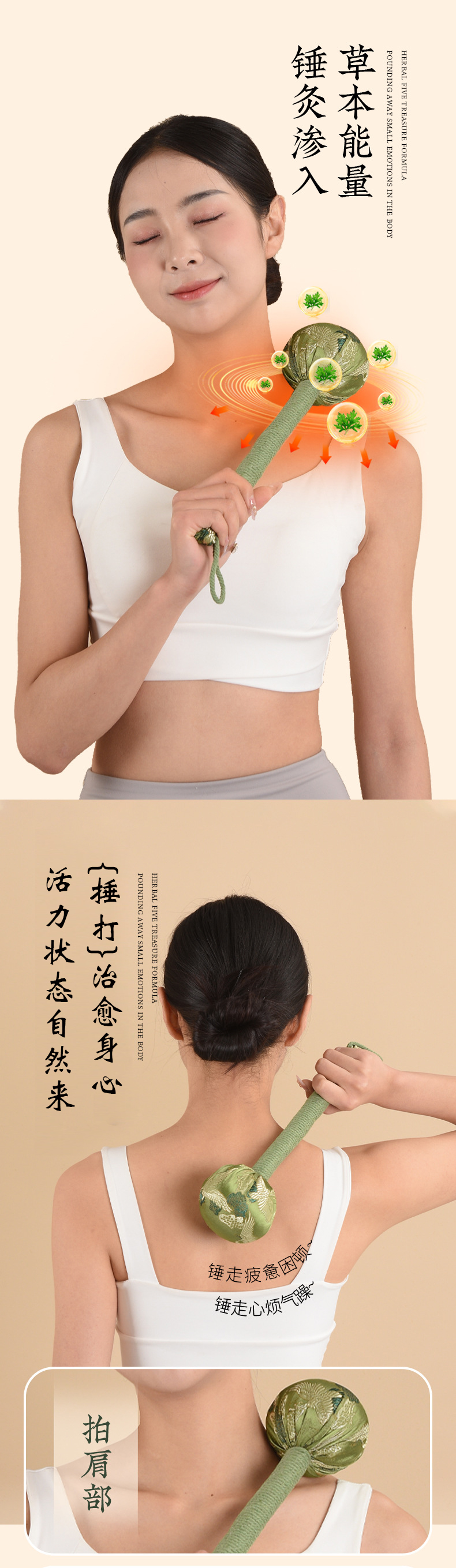 艾草锤养生锤艾灸锤按摩锤肩敲打棒拍八虚经络敲打颈椎按摩艾草锤