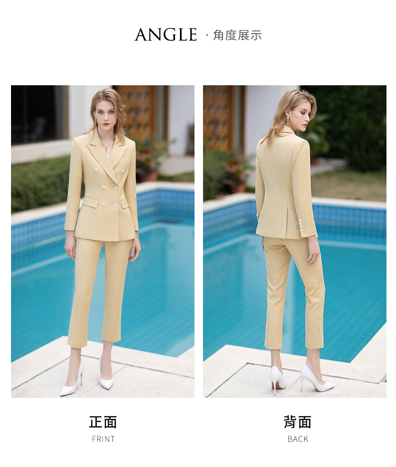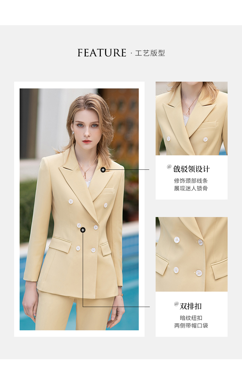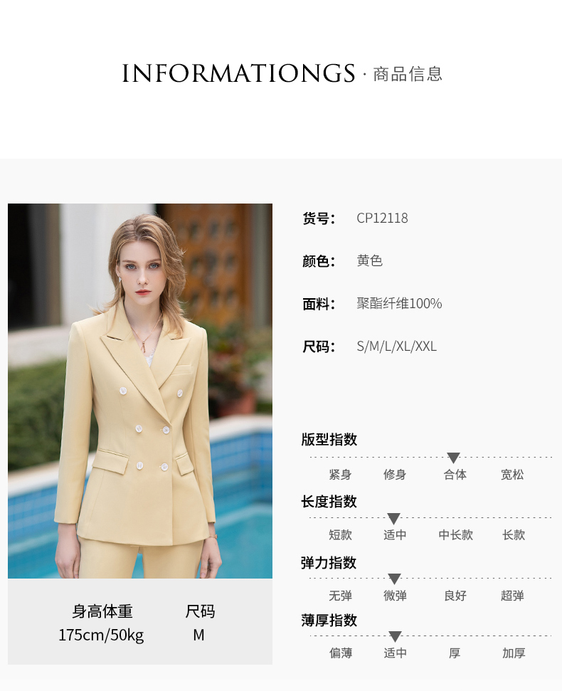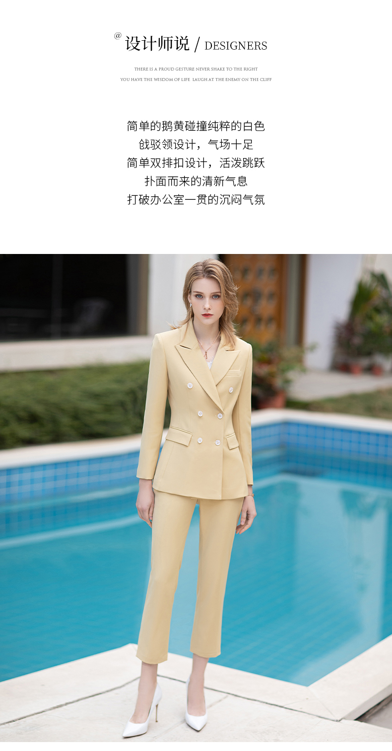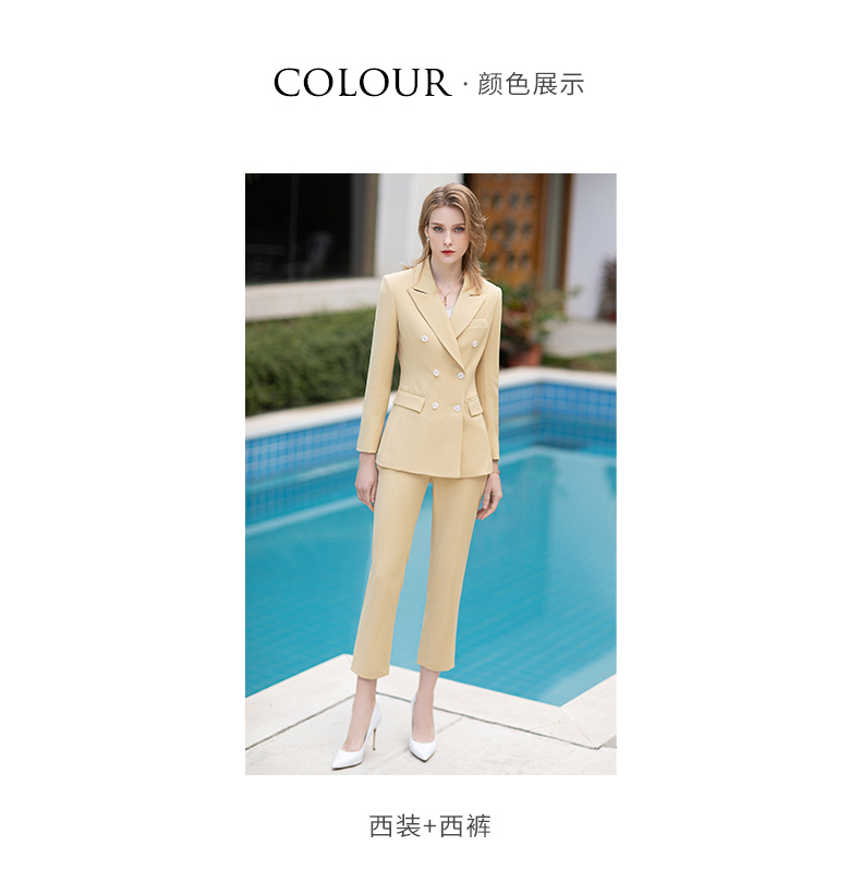 IWY/春秋时尚新款双排扣西装外套女鹅黄色商务总裁经理正装长袖职业装 CP12118
