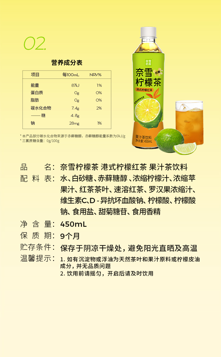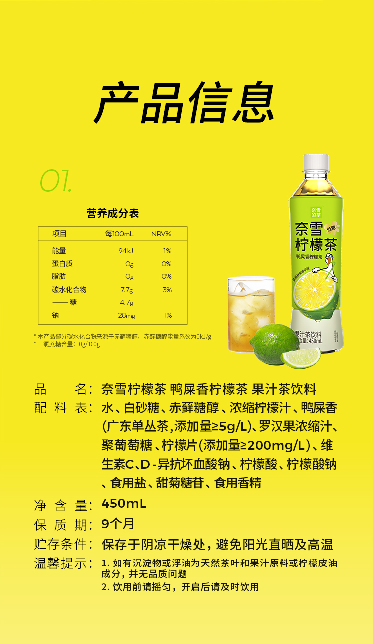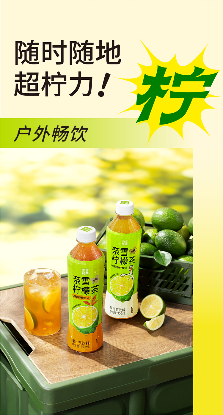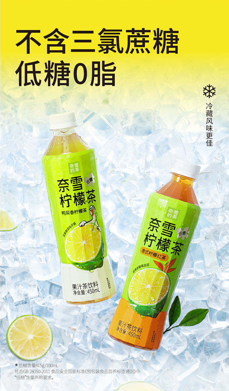奈雪的茶 鸭屎香柠檬茶/港式柠檬红茶低糖0脂茶饮料450ml*15瓶整箱装