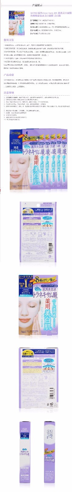 【保税仓】KOSE/高丝 传明酸透白面膜 紫色 5片