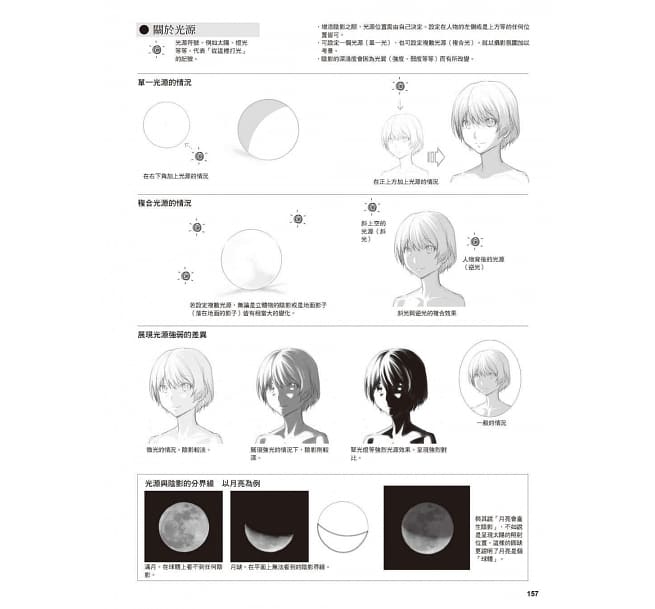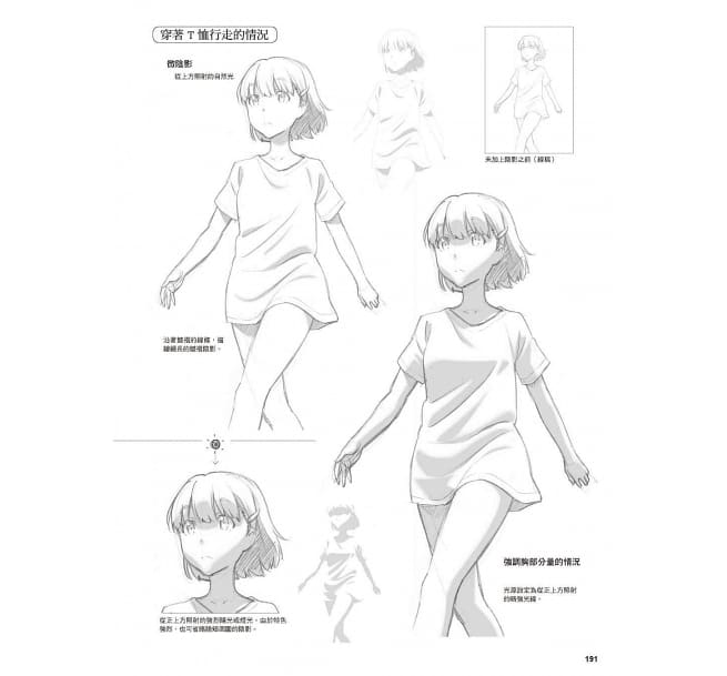 另外,本書也在所有的畫作中添加了「陰影」。陰影的描繪可呈現膚色並增添立體感及分量感,使人物的存在感倍增。動畫業界稱為「微陰影」的自然光呈現技巧,通常使用在想略微增添角色存在感的情況;而設定複數光源的複合光則攸關人物形象,演繹複雜的表情及感染力。