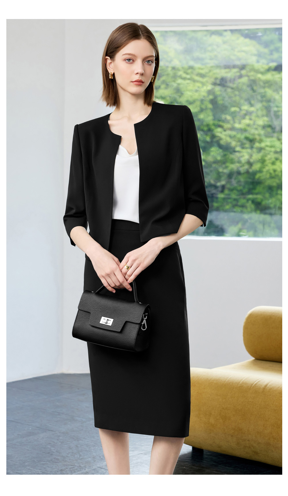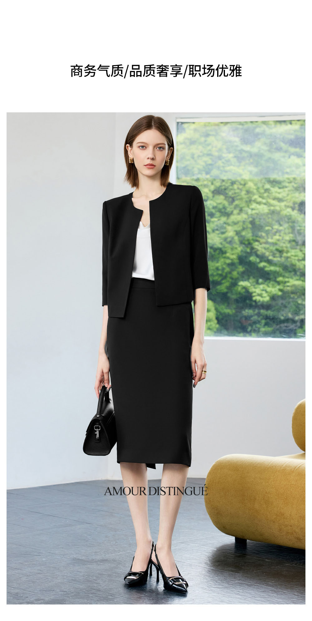 IWY/气质七分袖黑色职业西装套裙女夏季薄款总裁接待工作服C2297+S2298
