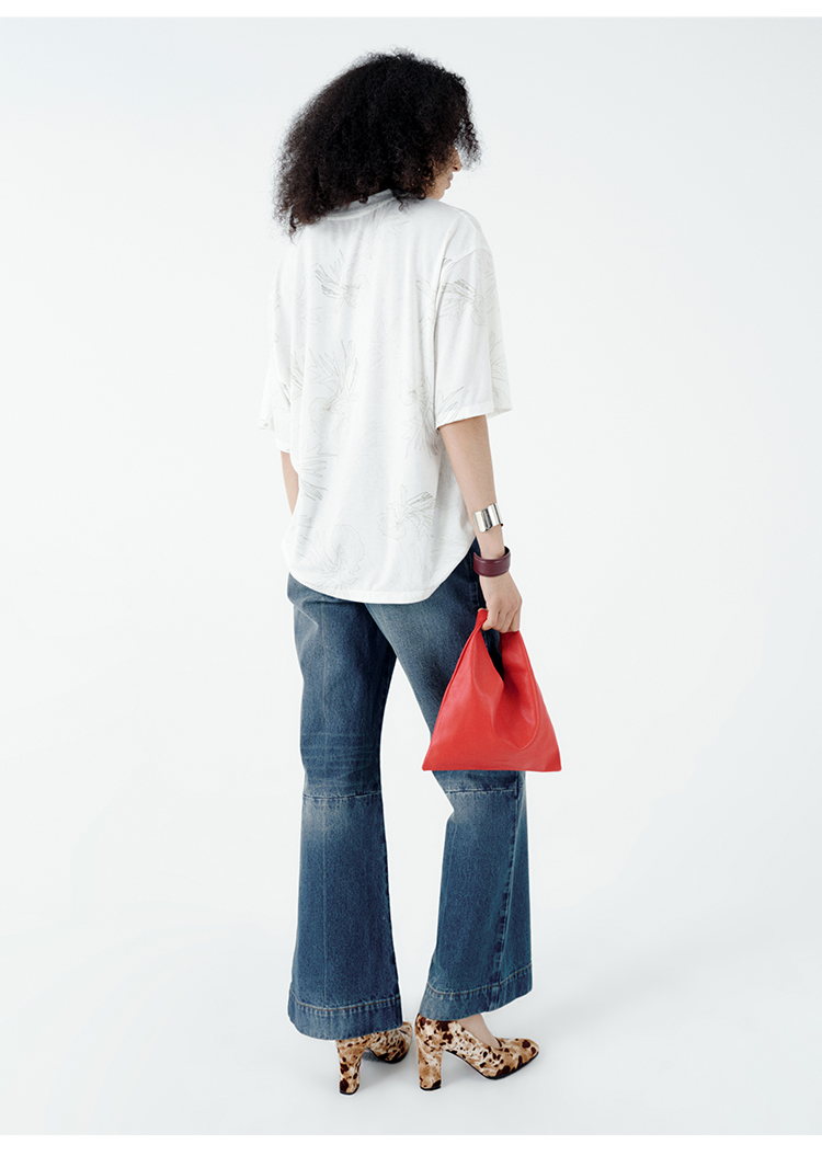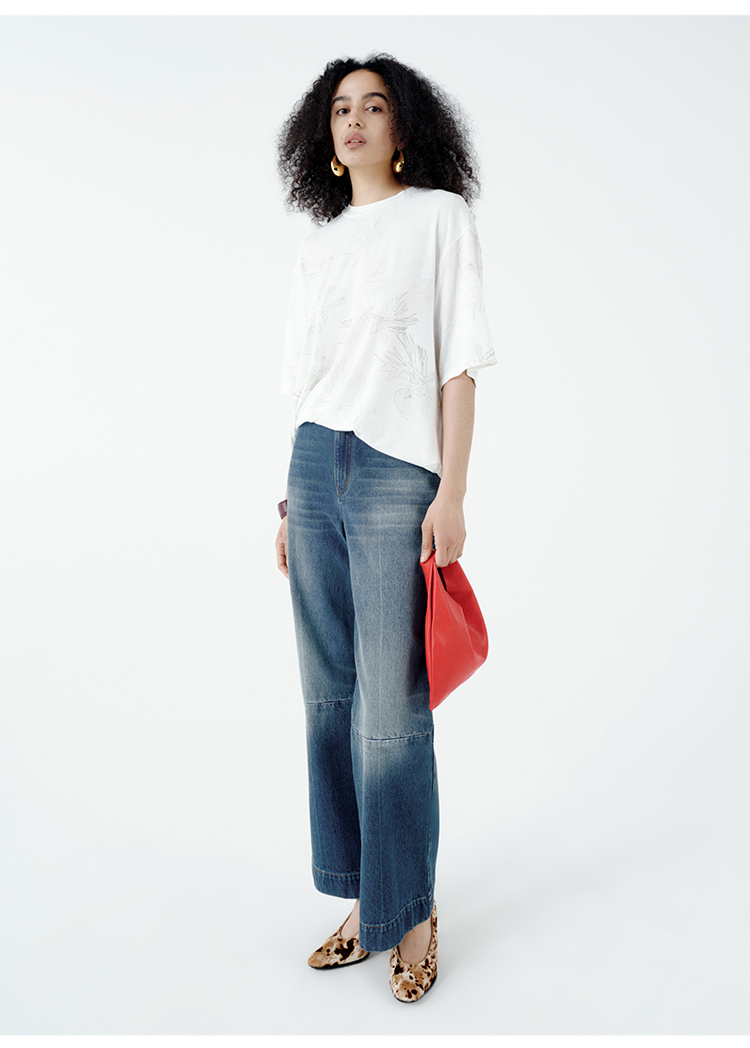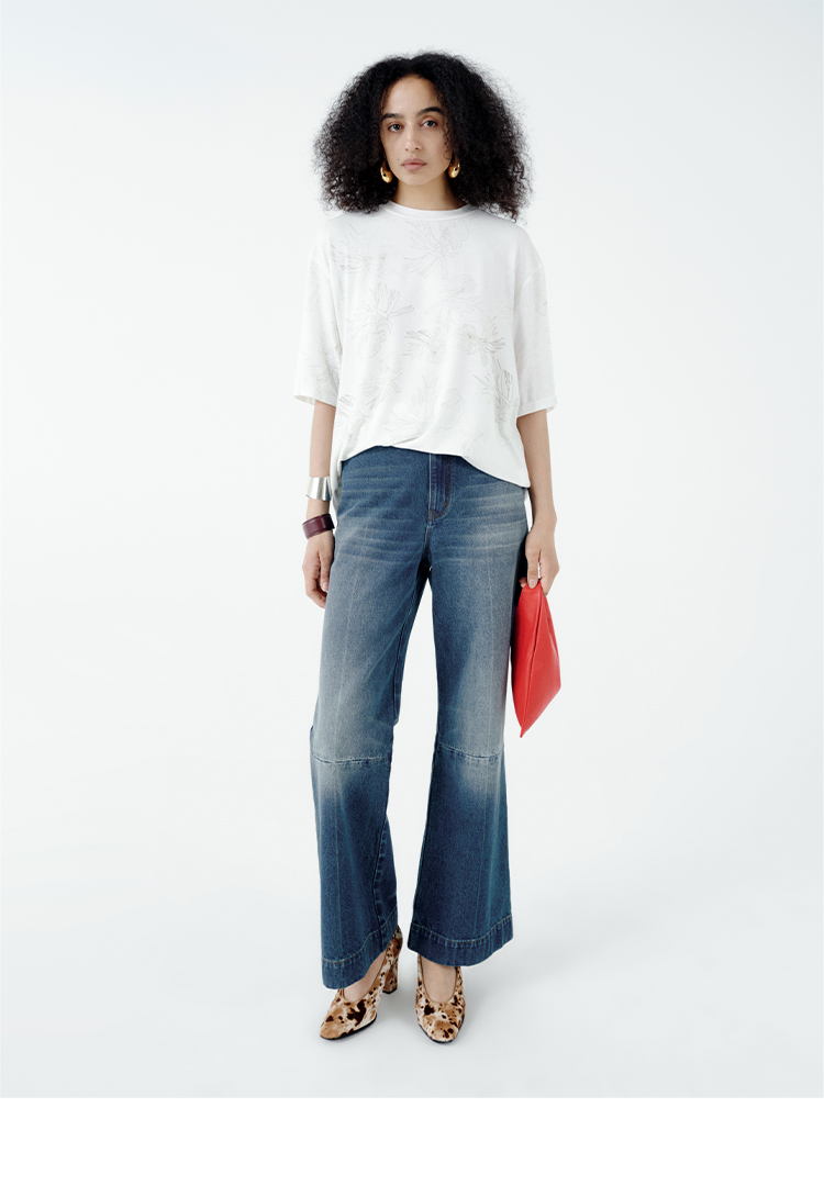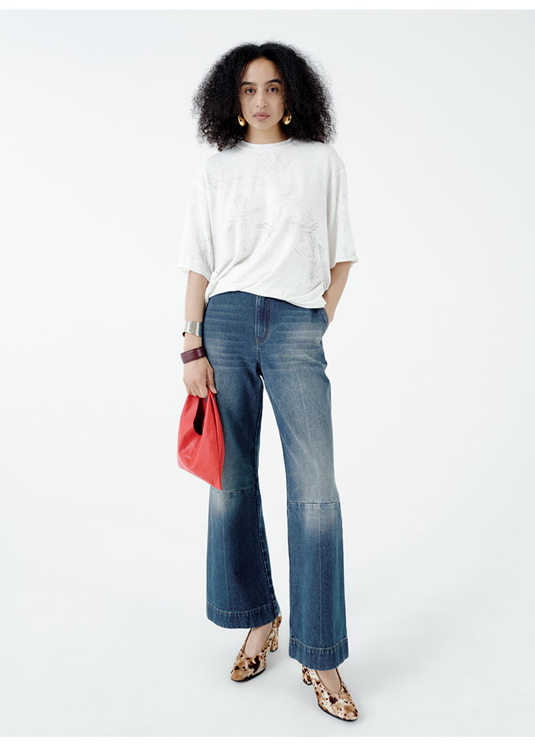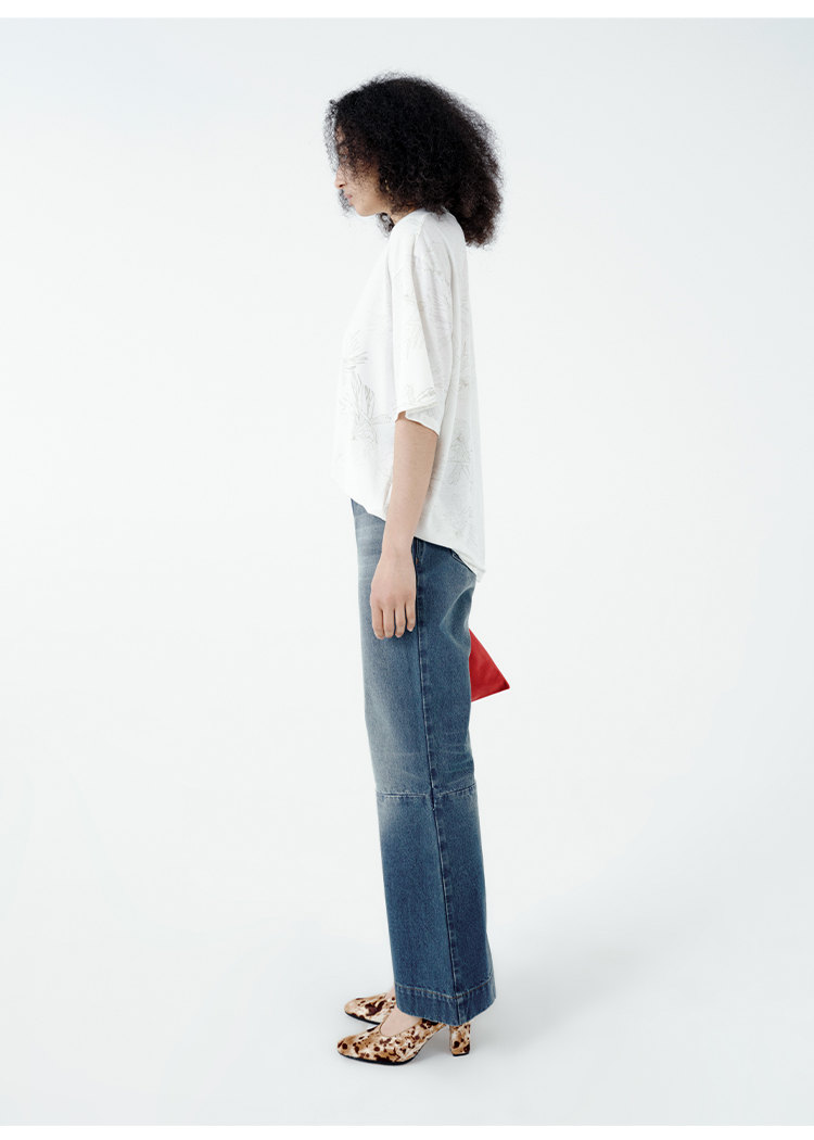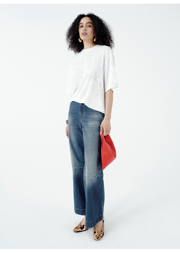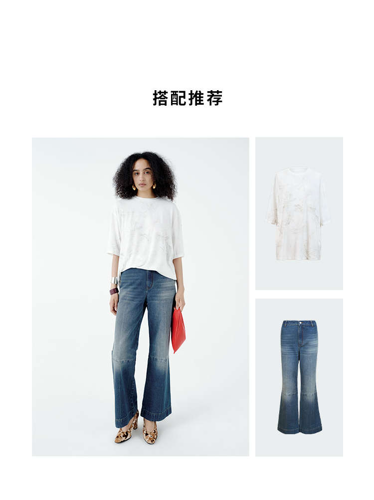 HIDEMI 自然花园手绘印花系列甄选天然亚麻针织圆领宽松版型t恤