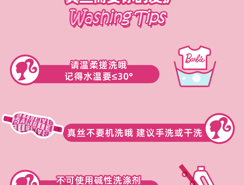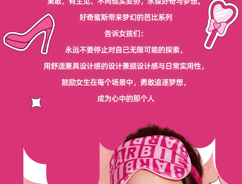 好奇蜜斯芭比联名真丝眼罩睡眠遮光缓解疲劳字母男女助眠可爱粉色 斑比